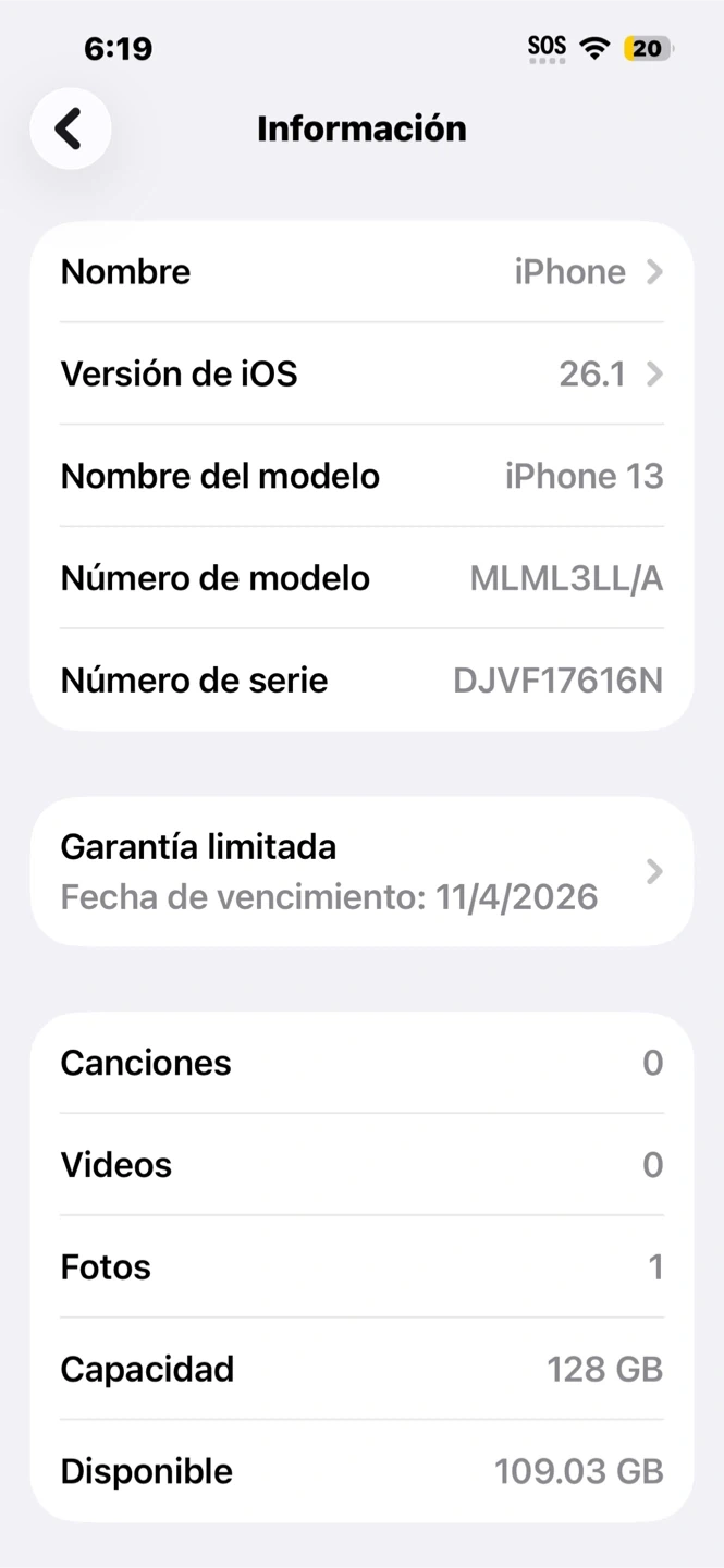 60Selling an iPhone 13 with 128GB of storage. The battery health is at 99%. Model number is MLML3LL/A.