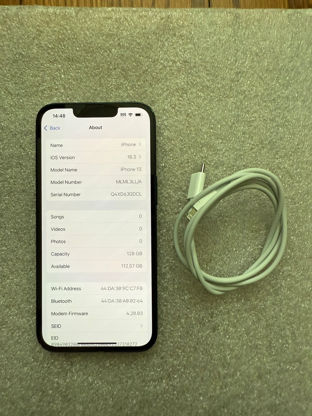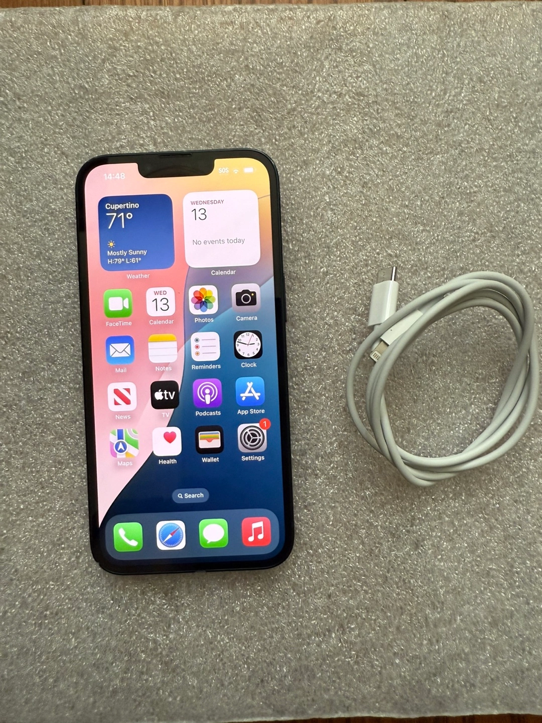 iPhone 13 Blue/Sim free Unlocked/128GB/Charging Cable