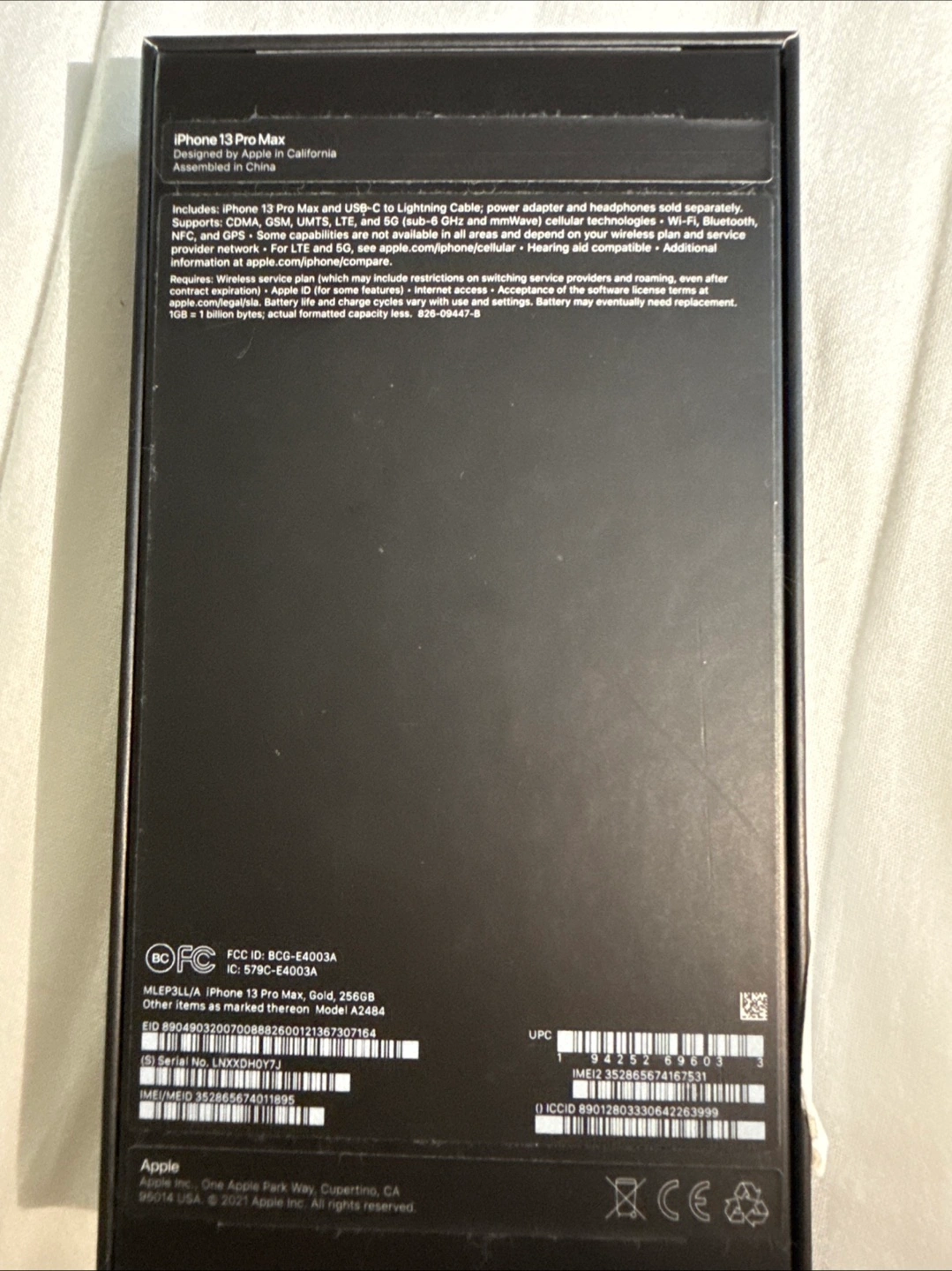 The Apple iPhone 13 Pro Max 256GB Gold in perfect condition- not a single scratch, always used with a case and screen protector. Battery health is excellent, and the phone works like new. Comes fully factory reset and ready for a new owner. This is a trusted, well-cared-for device that looks and feels brand new. It includes the original box, charger, and film, making it a complete package for the user. Message me if you have any questions.