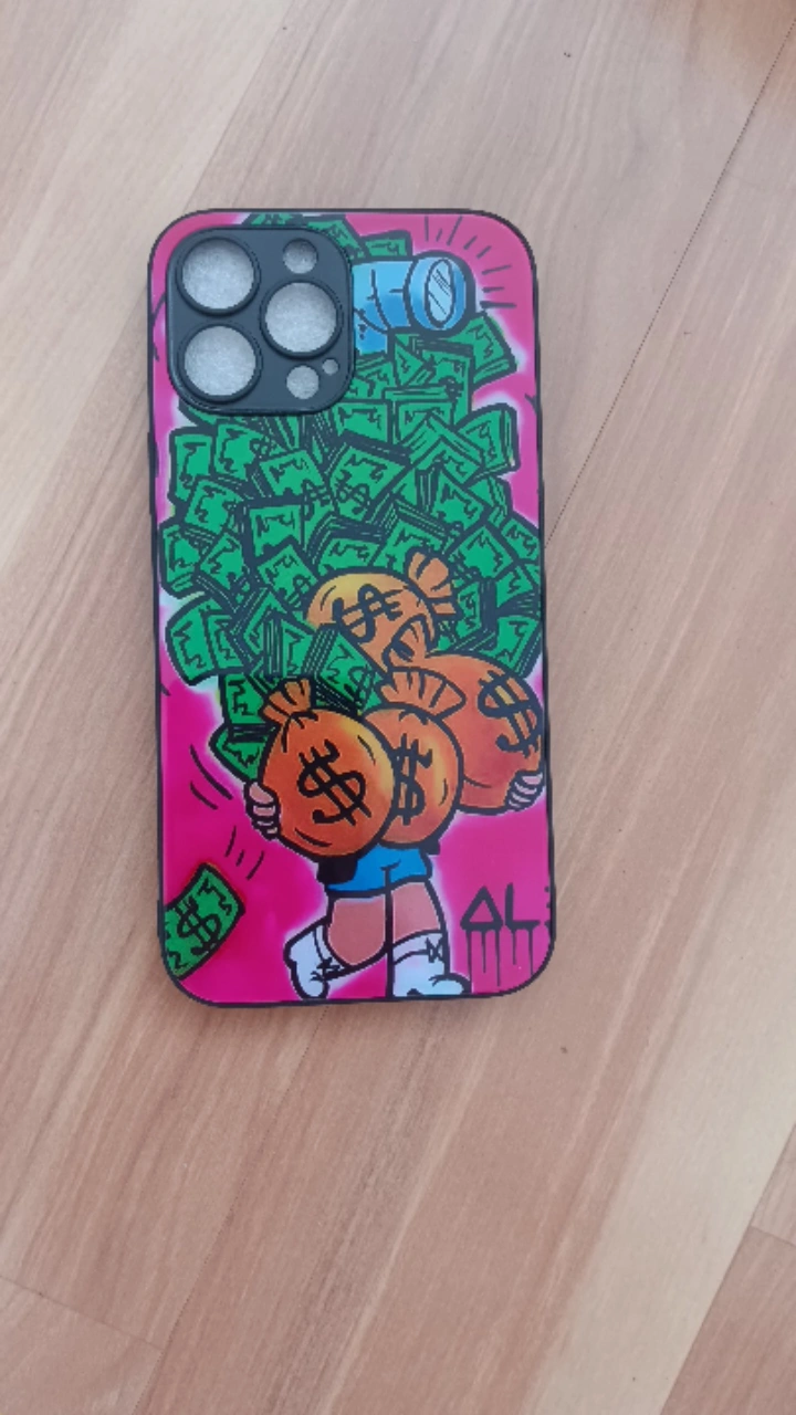 80New iPhone 13 Pro Max phone case. Colorful money bag design. Protective case for your phone.