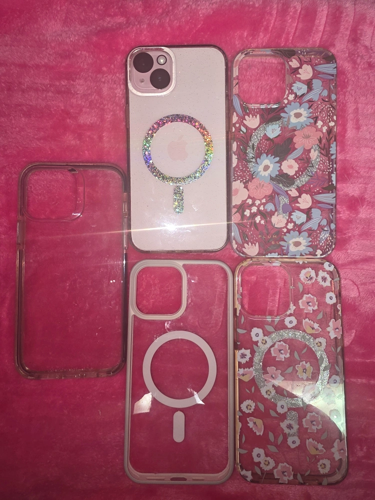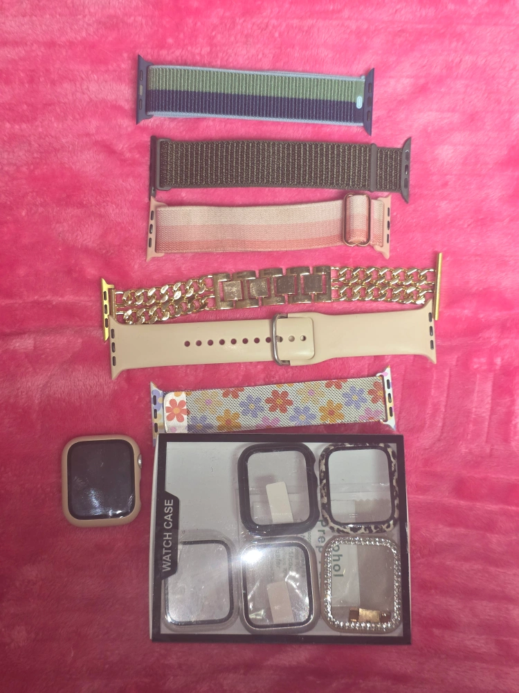 65Pink, 256gb storage. Comes with camera lens protectors and privacy screen along with 2 more privacy screens and camera lens protectors. 5 cases, 4 are magsafe. Watch is SE series in silver 44mm. Has a pink screen protector and case on. Got the phone back in July of last year, no scratches or dents. Like new.