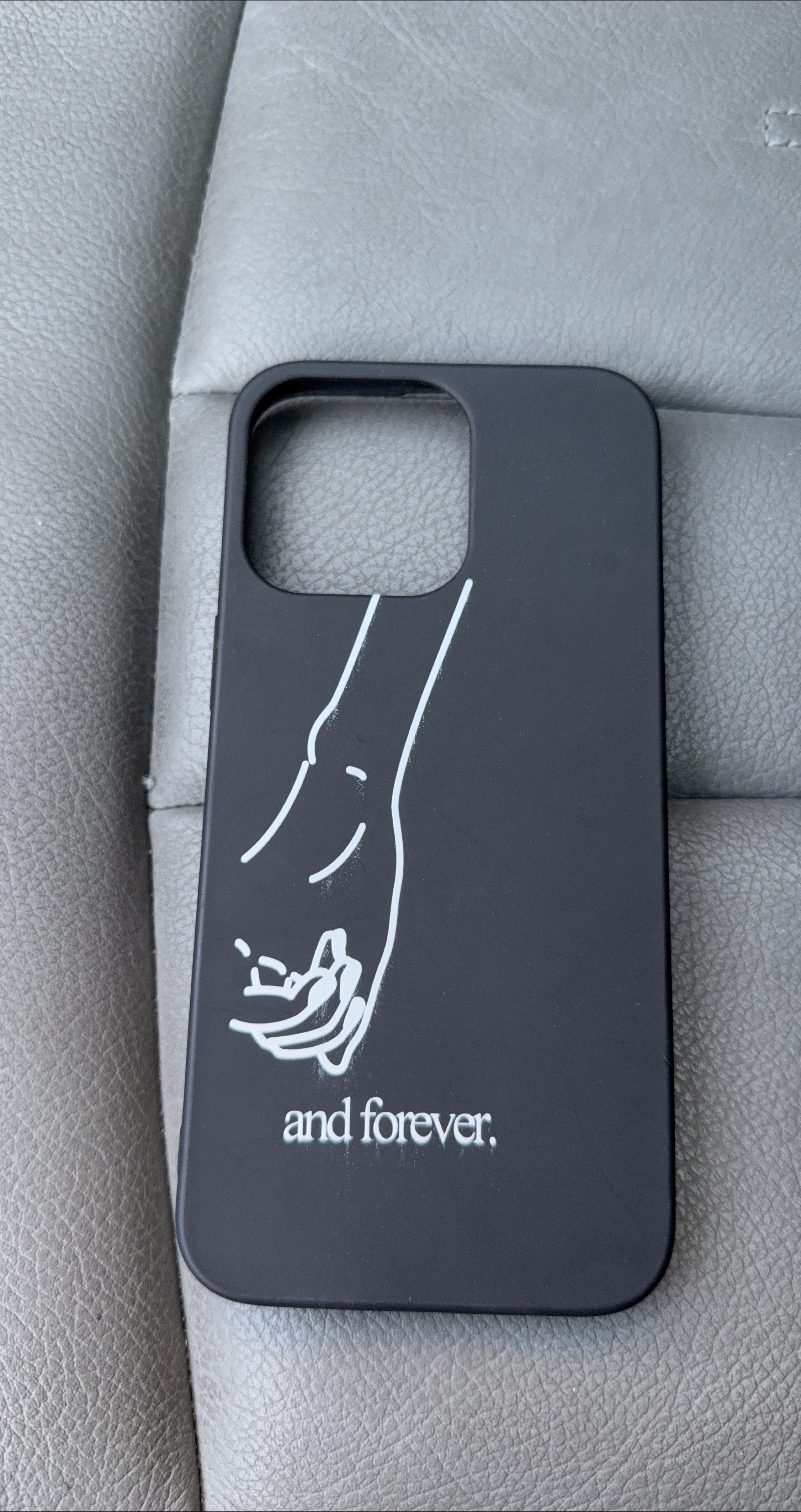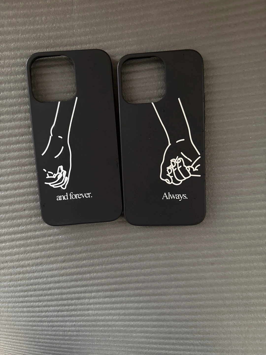 Selling a set of iPhone cases with cute designs. One says 'and forever.' and the other says 'Always.' They're in great condition!