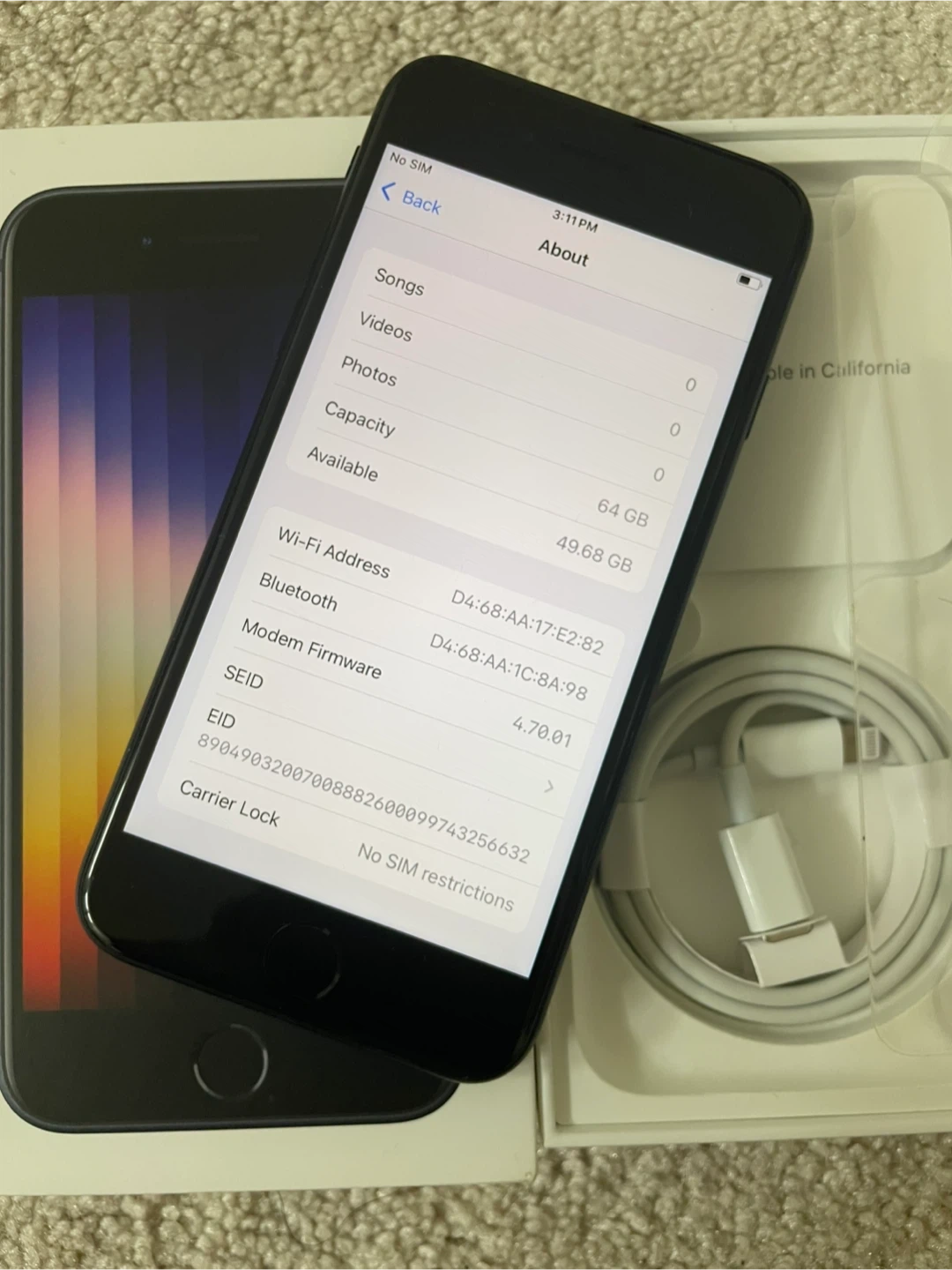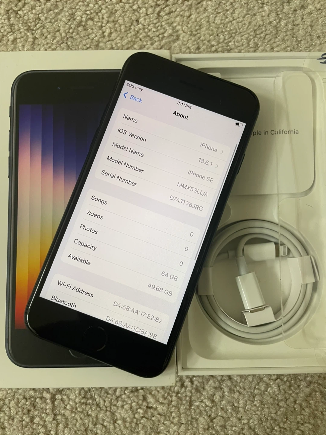iPhone SE 3rd generation 64GB Battery health 88% Unlocked Excellent condition No trade No shipping Ridgefield NJ Pickup cash only