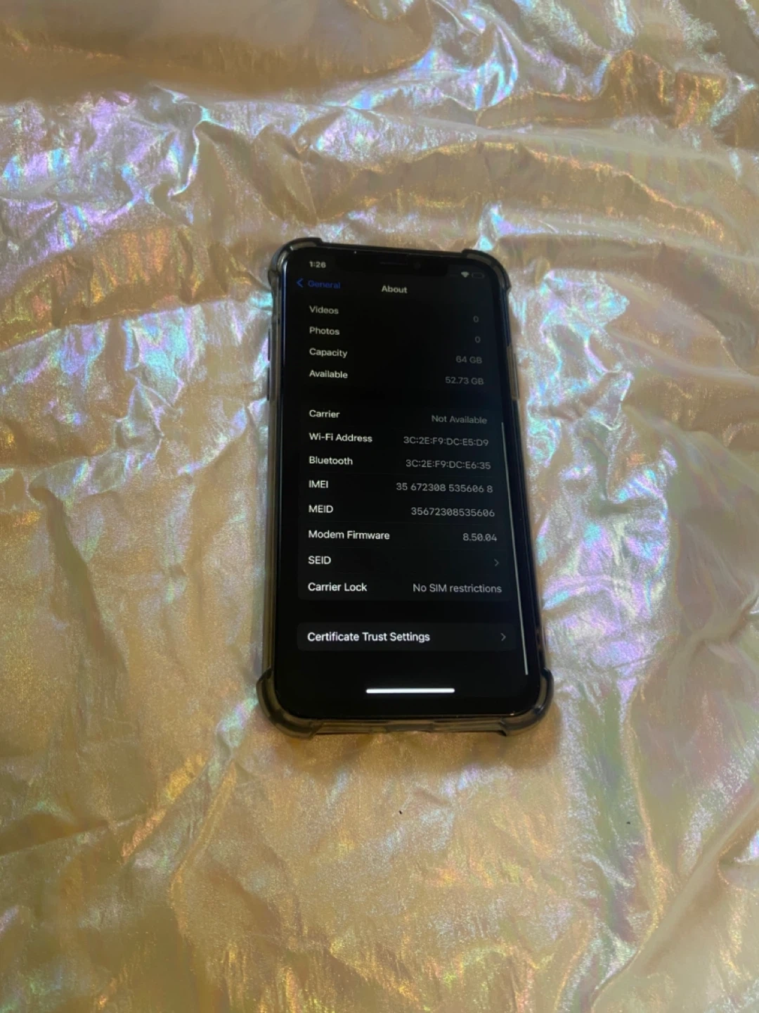 34Listed is a used iPhone X 64gb space grey phone. The screen is in mint condition and comes with screen protector and case . It is unlocked and otherwise phone is in pretty good condition. Please look at photos