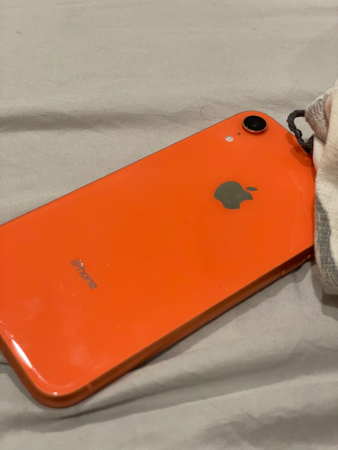 15Coral iPhone XR with case. Phone and case are in good condition, with minor wear and tear on the back of the phone. Phone works flawlessly. Charger included Selling due to upgrade.