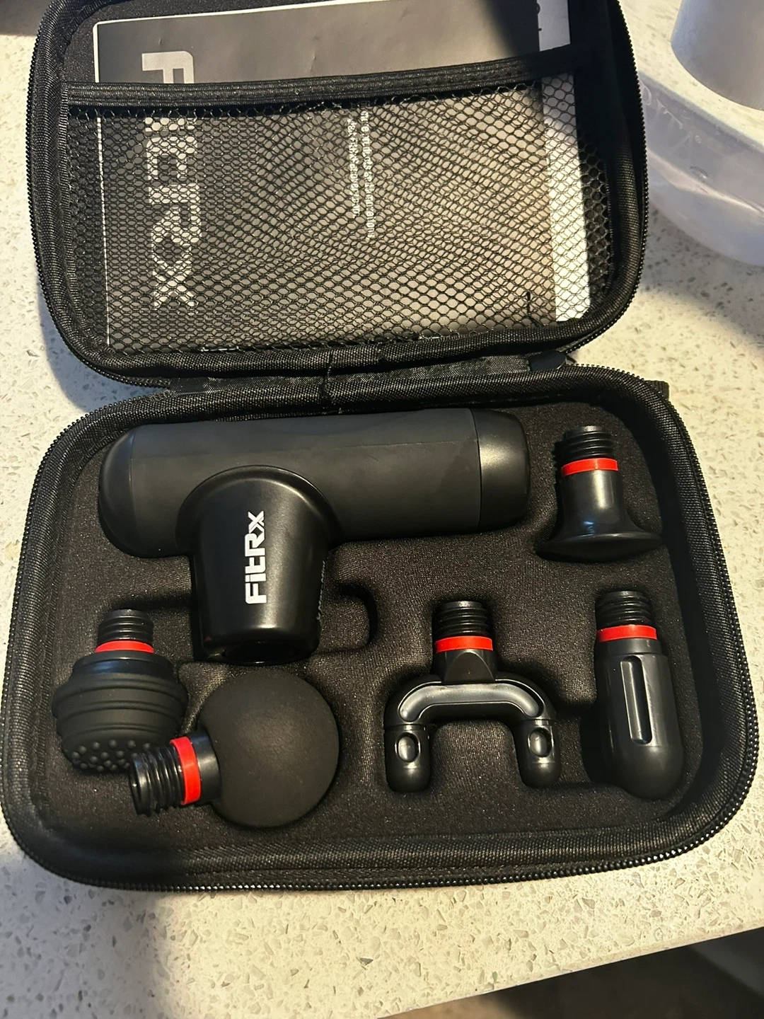 I'm selling a FitRx Mini Pro Massage Gun. It comes with the box and all the included components. This is great for relieving muscle tension and soreness after a workout or a long day!