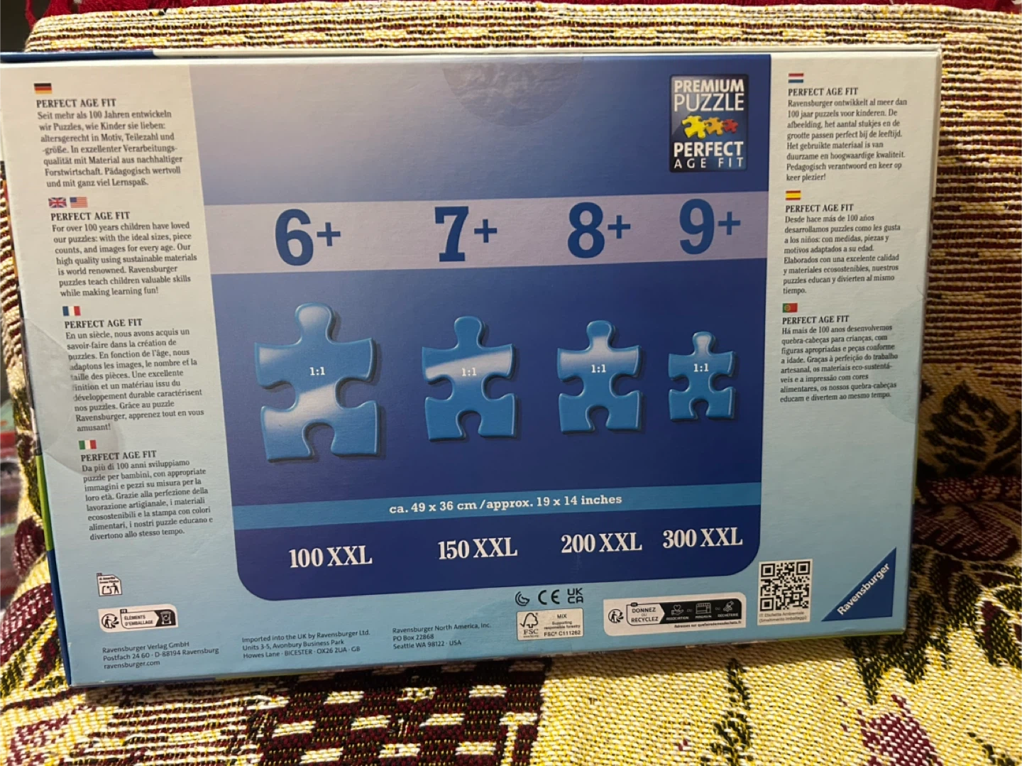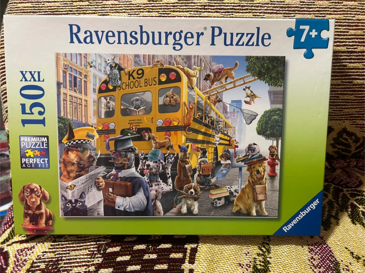 Selling a Ravensburger XXL puzzle featuring the K9 School Bus design! It's a premium puzzle with perfect age fit, suitable for ages 7+. The box indicates it contains 150 pieces and measures approximately 49 x 36 cm/approx. 19 x 14 inches