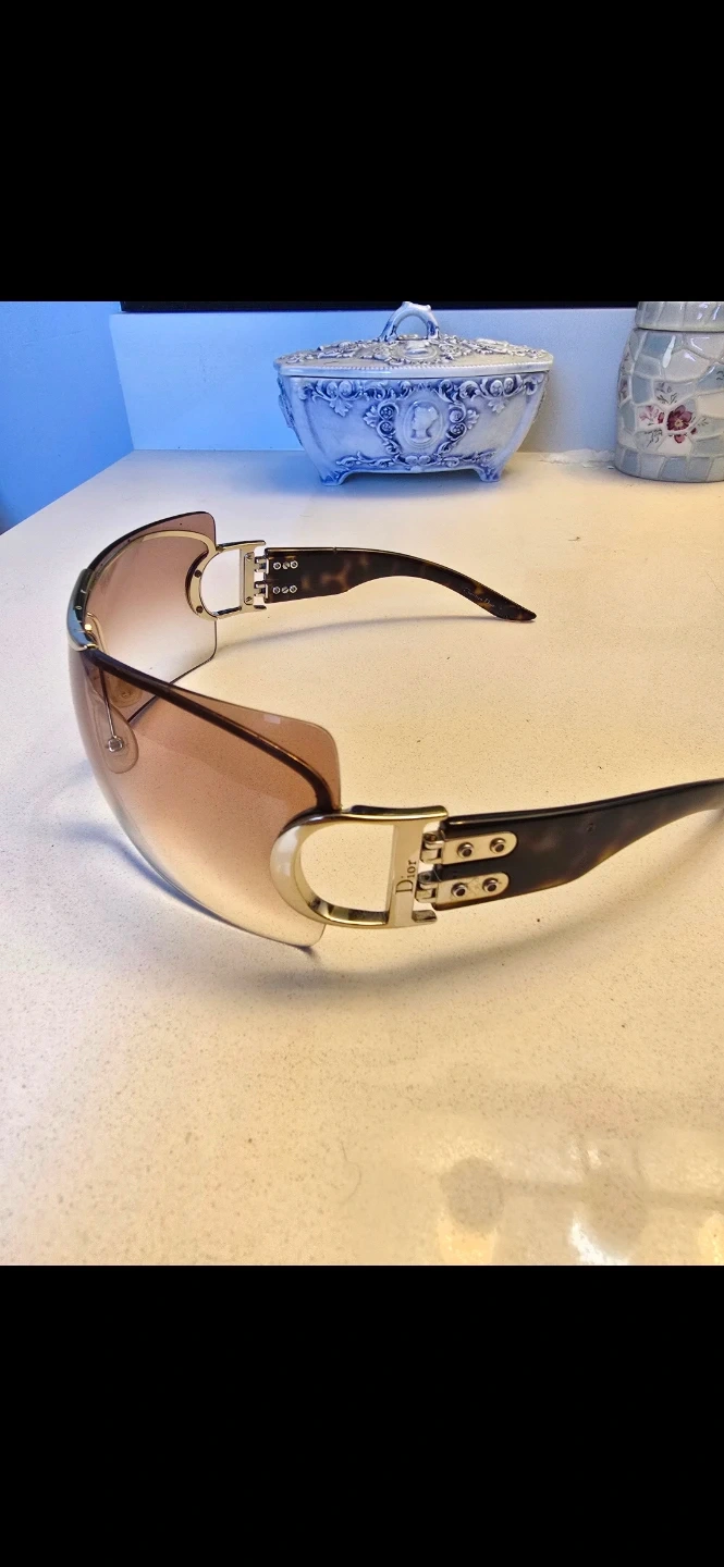 These Dior sunglasses feature a brown gradient lens and a sleek, modern design. They come with their original box, pouch, and cleaning cloth. Perfect for adding a touch of luxury to any outfit!