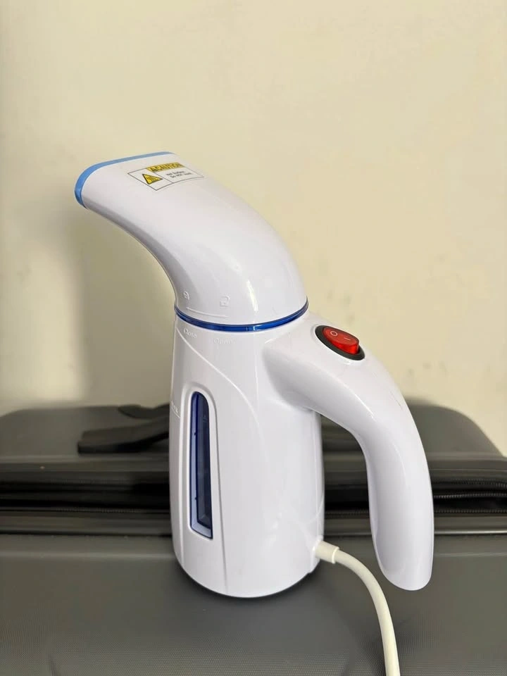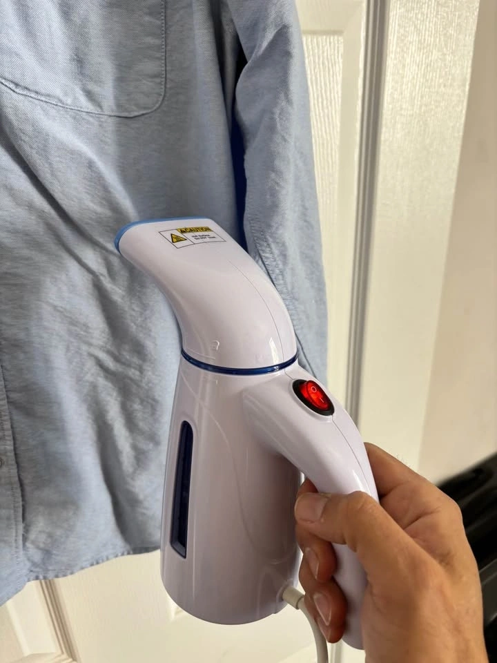 This is a portable handheld garment steamer, good for quick touch-ups or travel. It has a small water tank (120-150ml) and operates at 700W-800W to generate steam. It removes wrinkles from clothing without needing an ironing board. Includes a safety auto shut-off feature.