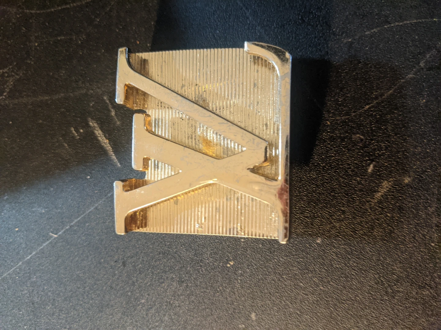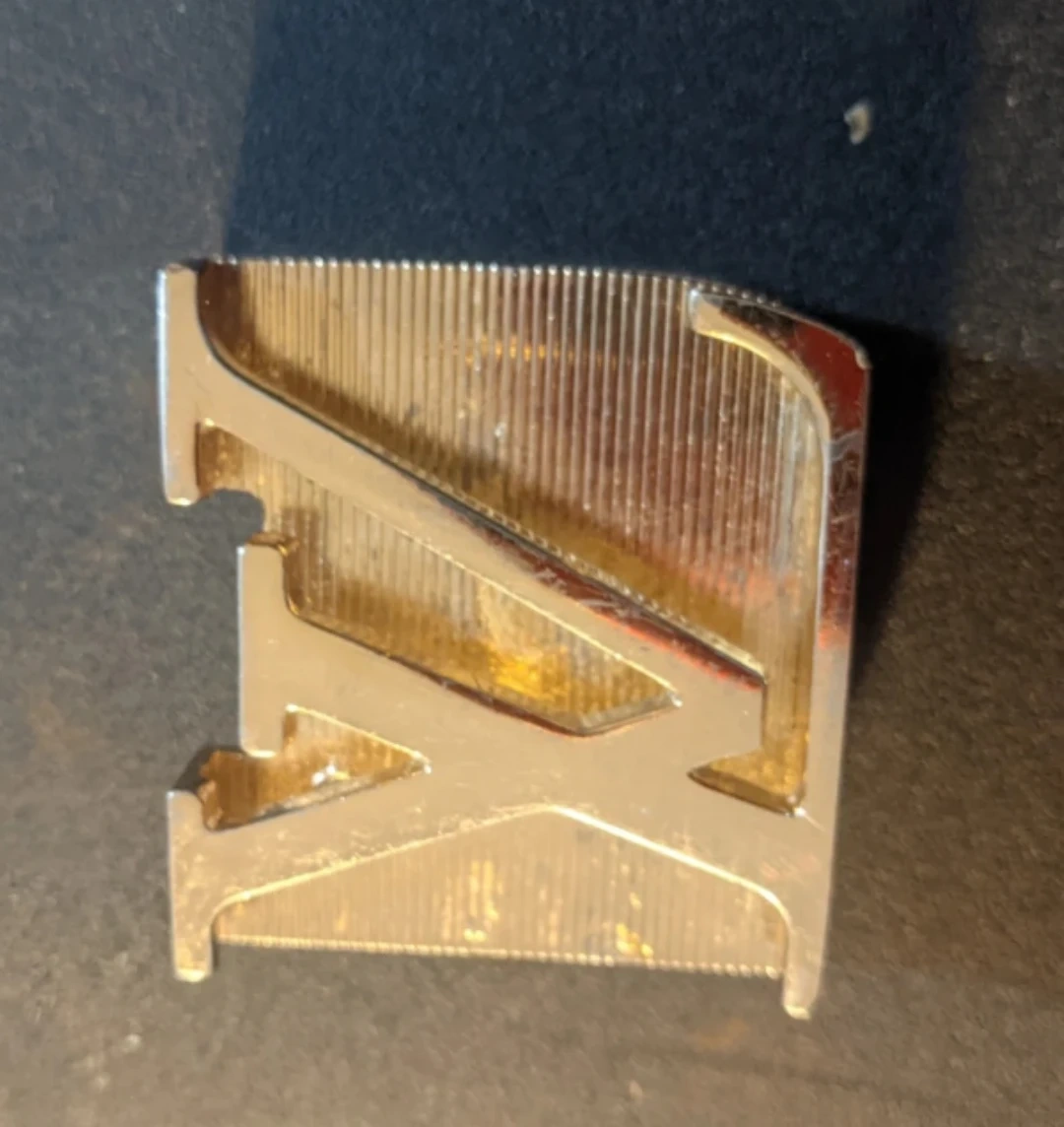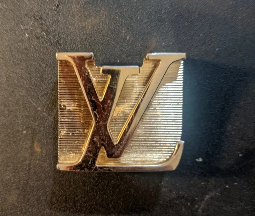 Selling a Louis Vuitton buckle with the iconic LV logo in gold. It shows some signs of wear.