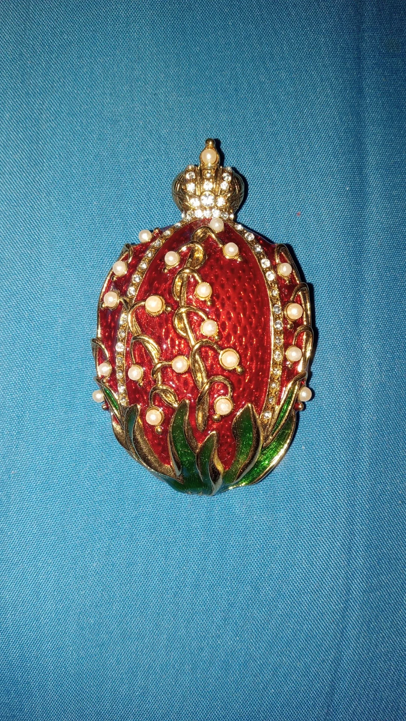 This item is a vintage Metropolitan Museum of Art (MMA) Faberge Egg brooch/pendant inspired by the famous jewelry house.