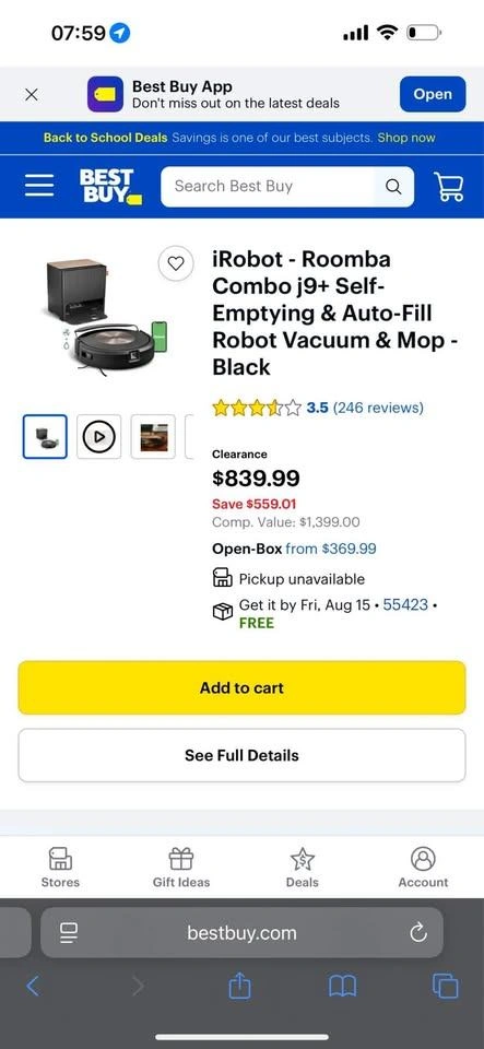 65Available, firm price! Retail price - 840$ + tax iRobot - Roomba Combo j9+ Self-Emptying & Auto-Fill Robot Vacuum & Mop. Great working and looking conditions! Cleaned and sanitized before sell. Pick up in Chicago. Willing to ship. —— For dirt and dust pickup. This cutting-edge robot vacuum & mop effortlessly banishes dirt from carpet and hard floors.*#1 cleaning system based on IEC 62285-7 on hard floor and carpet with dust. Cleaning system available in multiple iRobot products. POWERFUL VACUUMING MEETS DEEP CLEAN MOPPING Hard-working and intelligent, this 2-in-1 customizes your deep clean with up to 100% stronger suction* and double the scrubbing action. *Compared to Roomba Combo i Series robots READY FOR HANDS-FREE CLEANING The Clean Base Auto-Fill Dock powers and primes your robot by emptying debris for 60 days and refilling water or solution for 30 days of hands-free cleaning. *Robot software update required before initial usage; Wi-Fi connection necessary. THE ONLY FULLY RETRACTABLE MOP Unlike other 2-in-1s, its Auto-Retract Mopping System lifts itself to the top of the robot, preventing wet carpet messes. Your carpets stay dry with D.R.I. (Dry Rug Intelligence), only from iRobot. It seamlessly transitions from vacuuming carpet to vacuuming and mopping hard floors without any intervention from you. KNOWS WHEN TO MOP AND WHEN TO VACUUM On hard floors, it mops and vacuums at the same time. On carpet, it lifts its mop pad safely away and continues with powerful vacuuming avoiding wet carpet messes. SMART SCRUB MOPS BACK AND FORTH WITH CONSISTENT PRESSURE AND 2X DEEPER SCRUBBING Some areas of the home need a deeper clean–pawprints in the mudroom, spills under the kitchen table, tiles in your bathroom. Simply enable SmartScrub and your Roomba Combo j9+ will scrub back-and-forth, just like you would. *Compared to standard vacuum & mop mode for coffee and grime. FIRST-OF-ITS-KIND DIRT DETECTIVE INTELLIGENCE Powered by iRobot OS, Roomba Combo j9+ learns from past cleaning missions to automatically prioritize dirtier rooms and adjust settings like suction, scrubbing and cleaning passes. 4-STAGE CLEANING FINDS DIRT WHEREVER IT HIDES Dual Multi-Surface Rubber Brushes, an Edge-Sweeping Brush, 100% stronger Power-Lifting Suction*, and back-and-forth pressure mopping combine to keep every corner of your carpets and hard floors fresh. *Compared to Roomba Combo i Series robots KNOWS WHAT TO CLEAN AND WHAT TO AVOID Roomba Combo j9+ robot uses iRobot OS and PrecisionVision Navigation to recognize and avoid common objects in its way like cords, pet waste, socks and shoes. And with our Pet Owner Official Promise (P.O.O.P.)* – it will steer clear of pet accidents, or we'll replace it for free. *Additional terms and conditions apply – see iRobot website for full details. START CLEANING YOUR WAY EVEN FASTER Straight out of the box, your Roomba robot vacuum will create a complete map of your home 7x faster than the previous mapping technology so you can clean wherever you want, whenever you want after just one run.