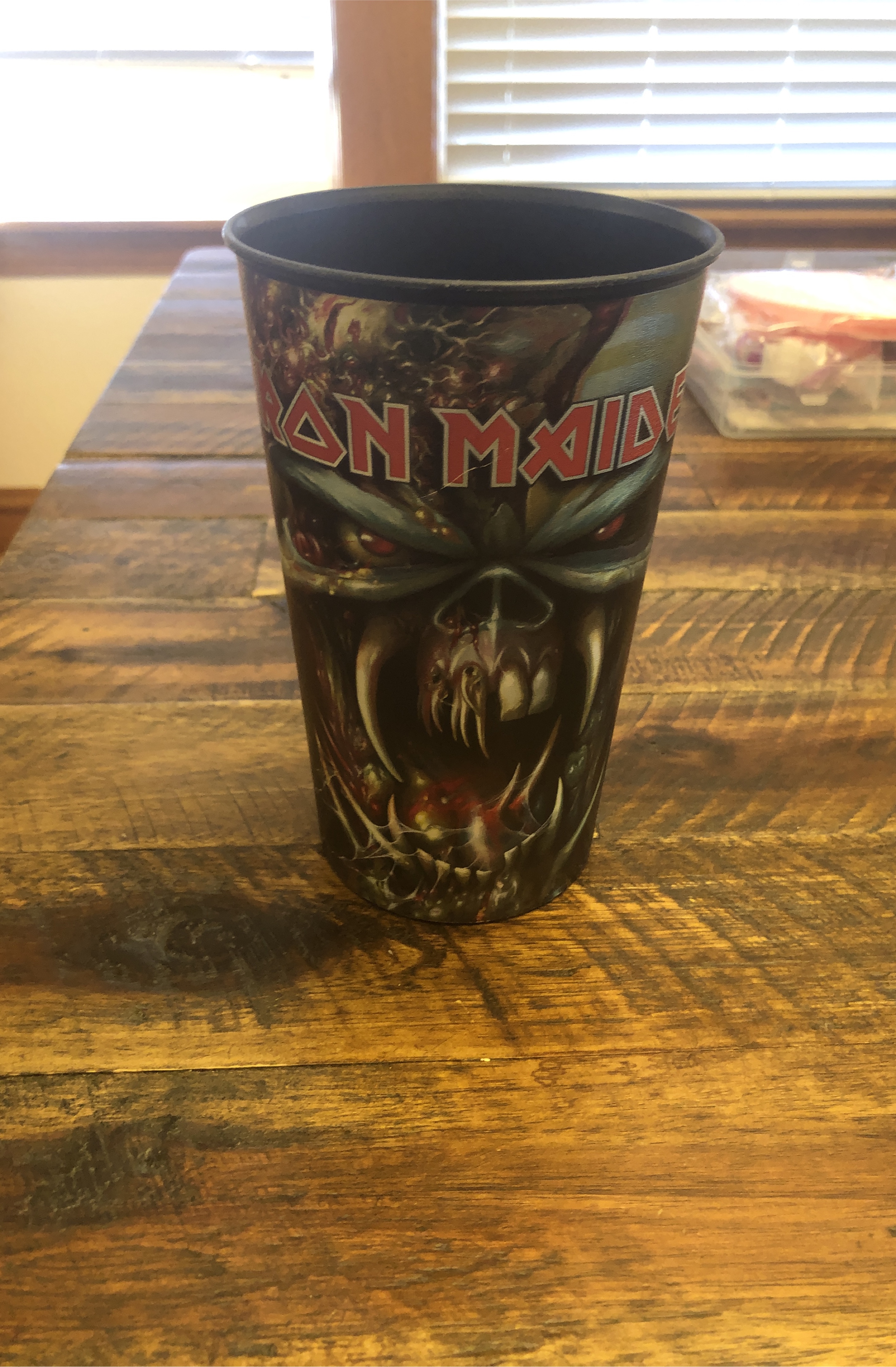 Selling a used Iron Maiden cup. It features the band's logo and a cool design. Perfect for any fan!