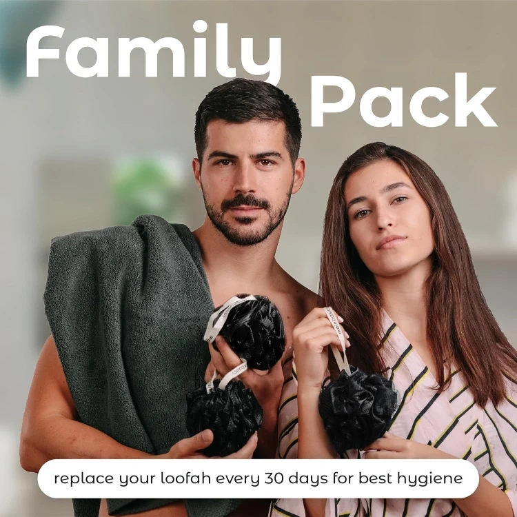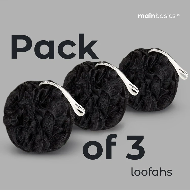 Bath Shower Loofah Sponge Pouf Body Scrubber Exfoliator Body Wash Sponge (Set of 3, Triple Black)