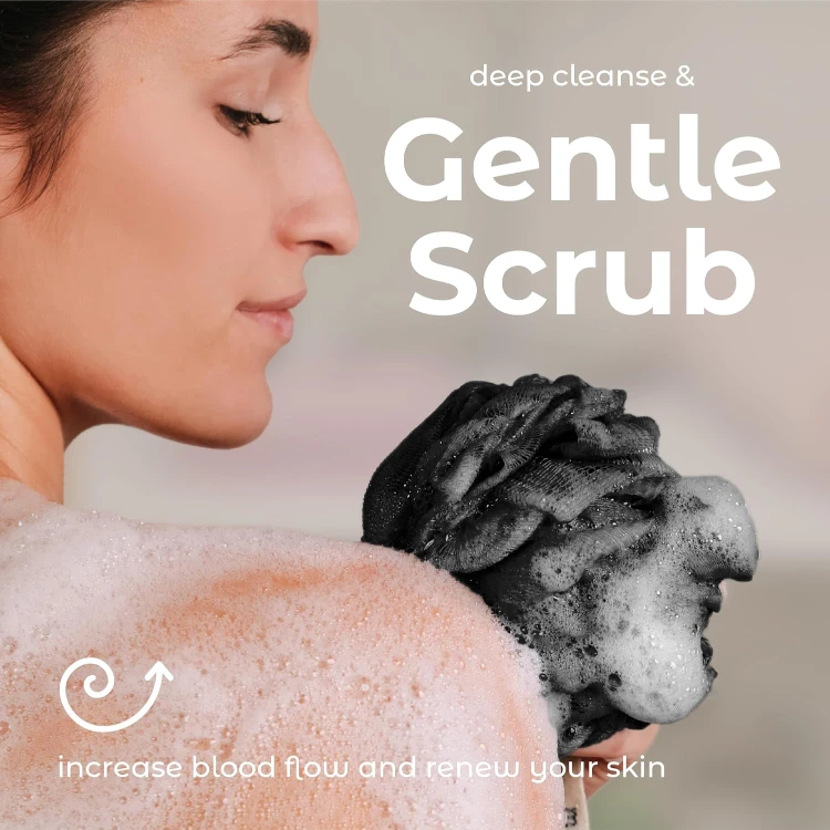 Bath Shower Loofah Sponge Pouf Body Scrubber Exfoliator Body Wash Sponge (Set of 3, Triple Black)