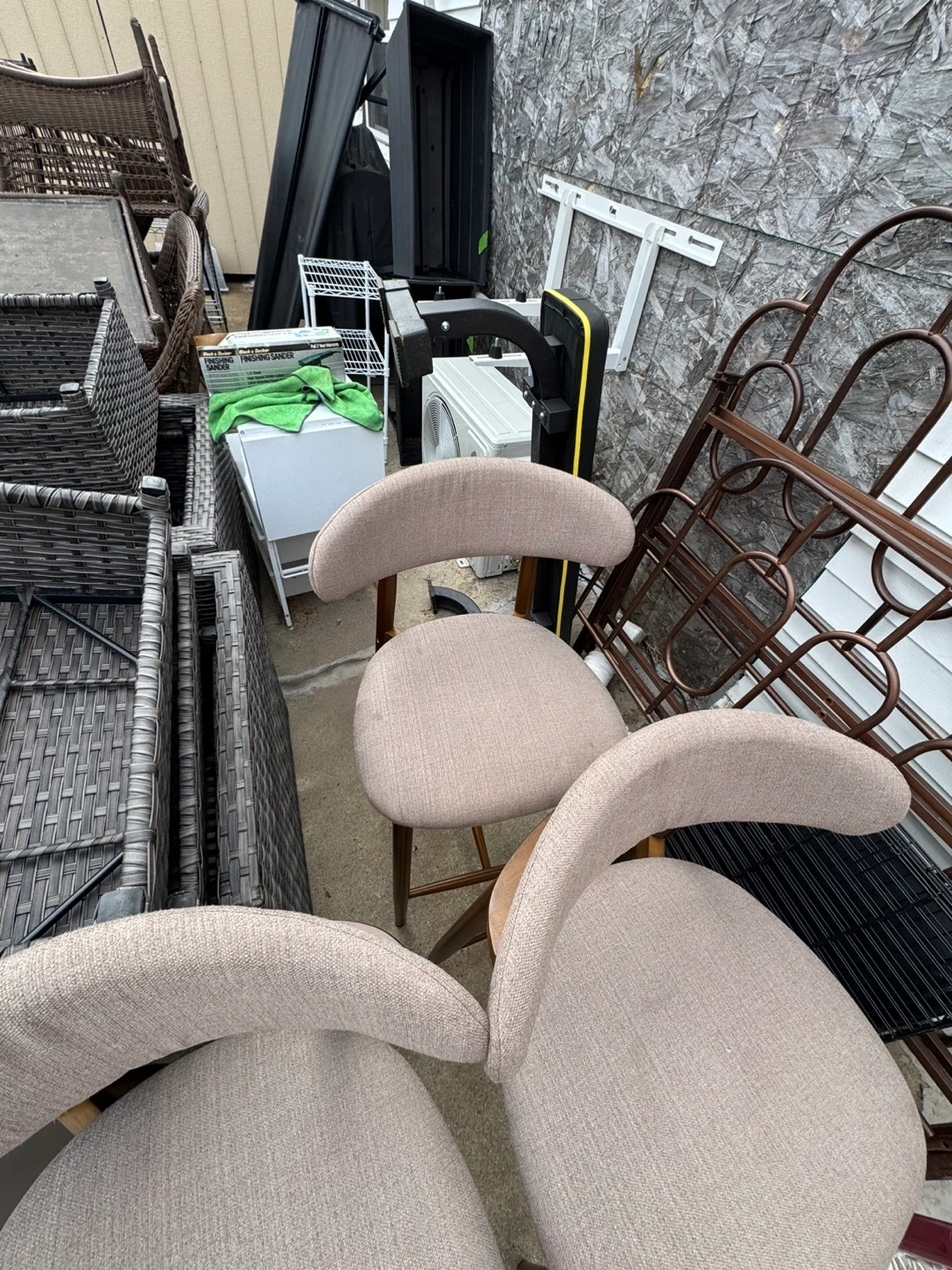 Set of 3 Light Tan Fabric Upholstered Bar Stools
