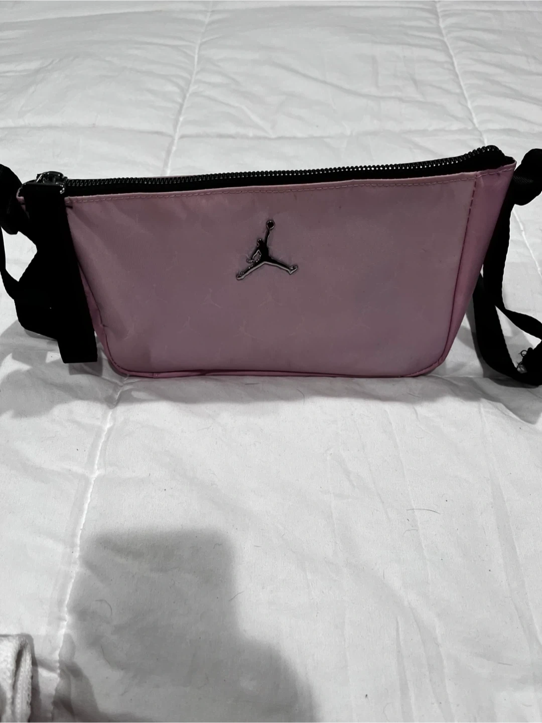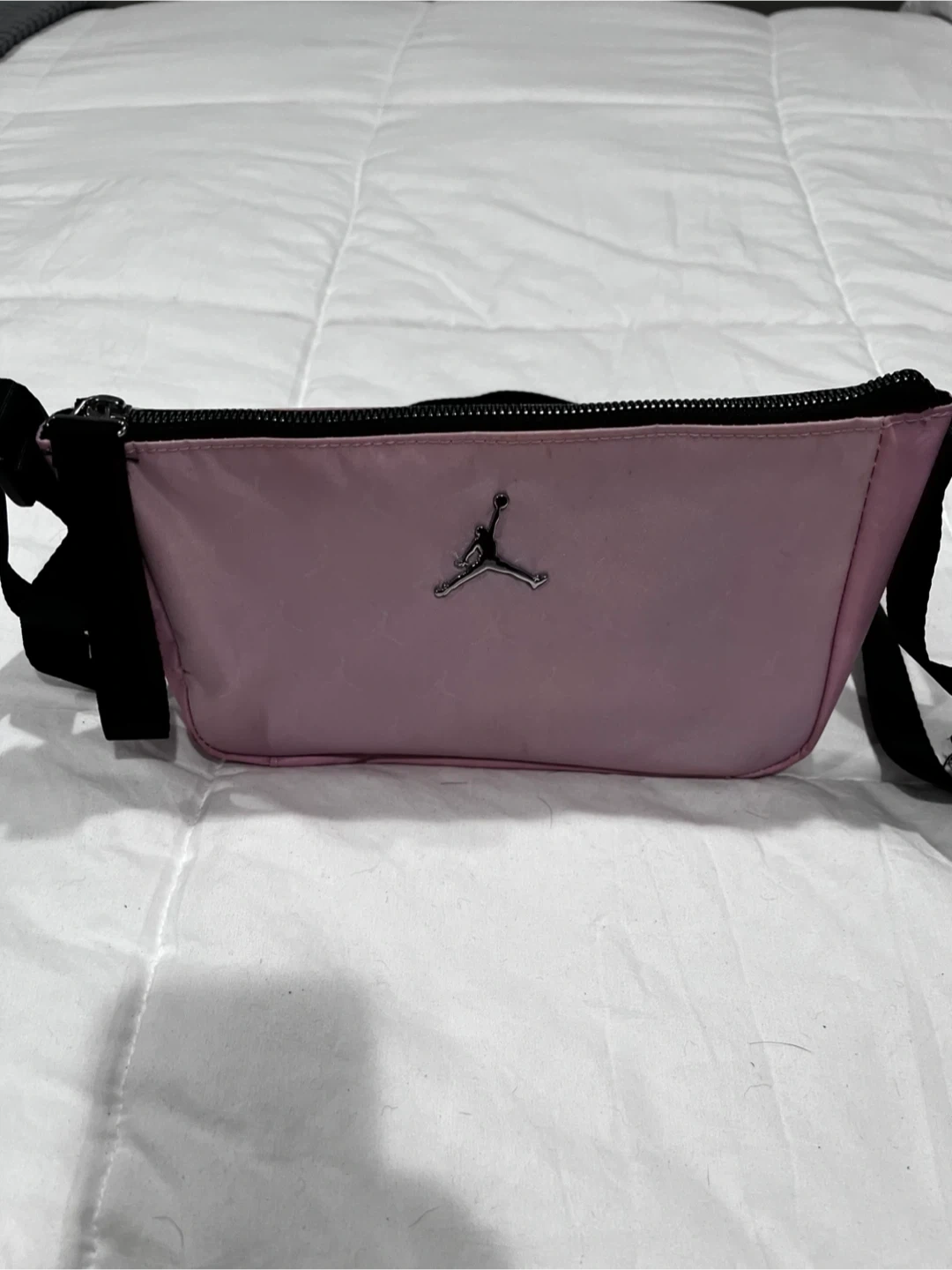 Selling a cute Jordan fanny pack in pink! It's perfect for carrying your essentials in style. The bag features the iconic Jordan logo. It's in great condition and ready for a new owner!