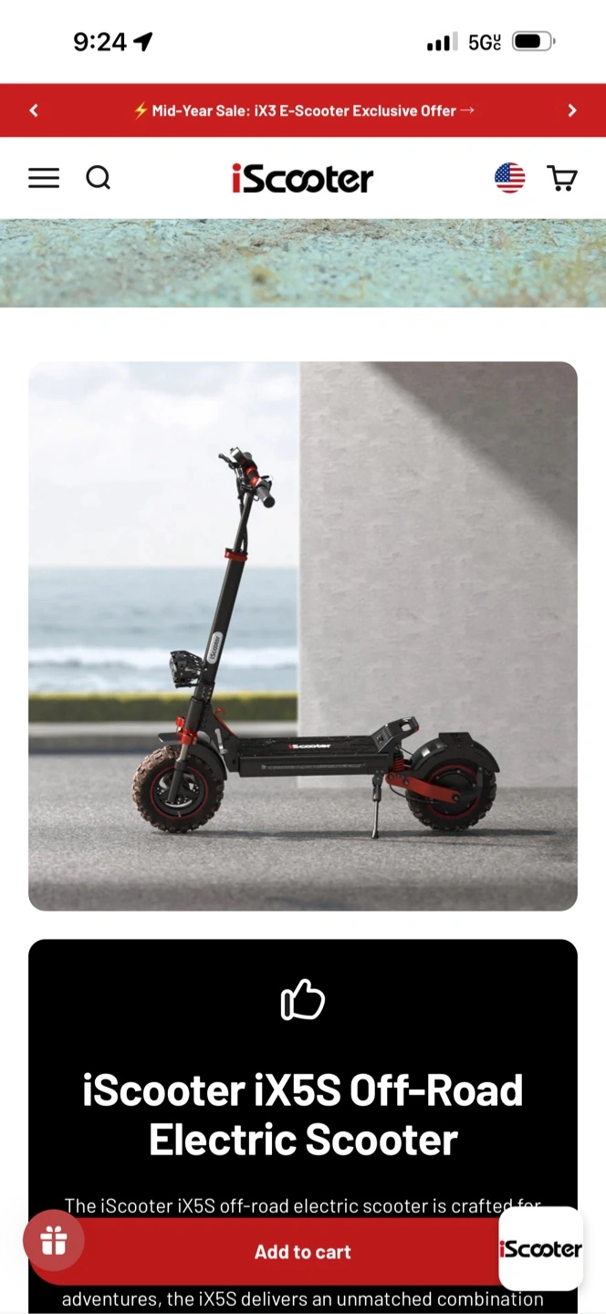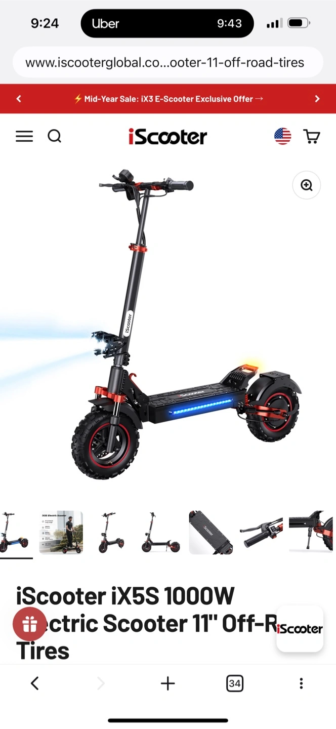 10Selling an iScooter iX5S 1000W electric scooter with 11" off-road tires! It is in great condition. This off-road electric scooter is crafted for adventures, delivering an unmatched combination of power and durability. Price set. No negotiation. No trades. No delivery unless you want to pay extra.