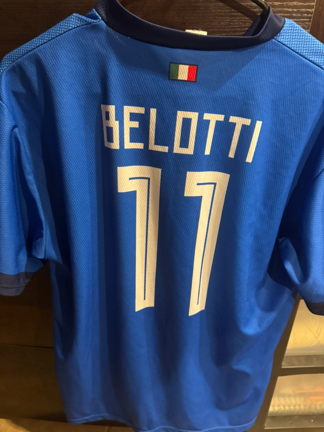 25Men's size medium Italy national team soccer jersey. Features Belotti #11 on the back. 100% polyester. Good condition.