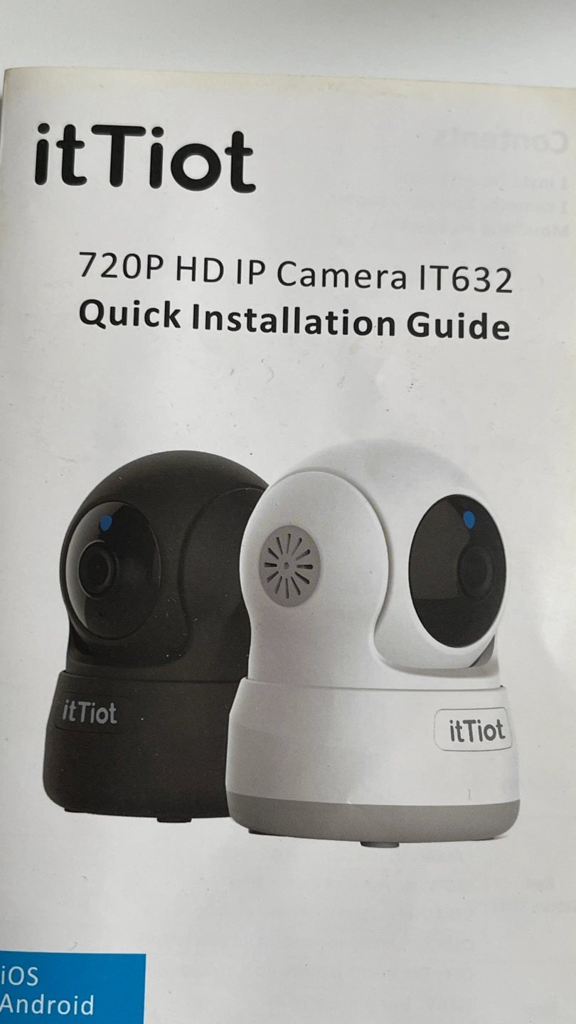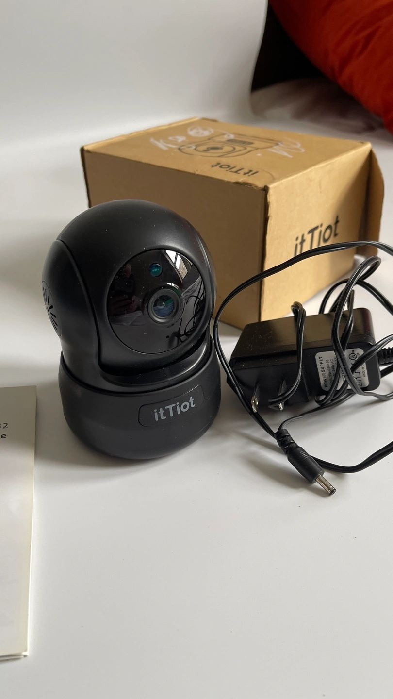 141Black 720P HD IP camera. Includes power adapter and instruction manual. Wireless home security camera. Model IT632.