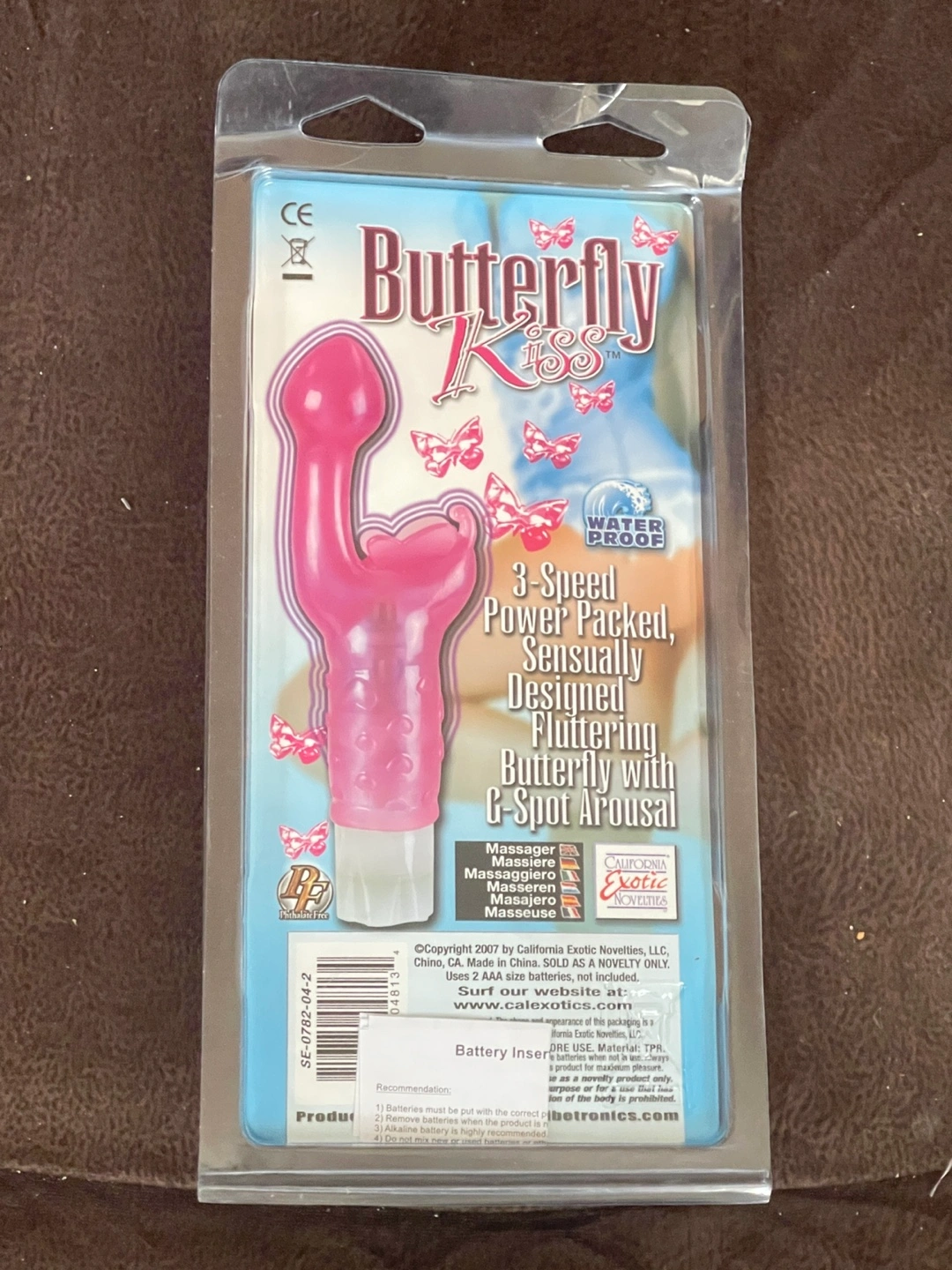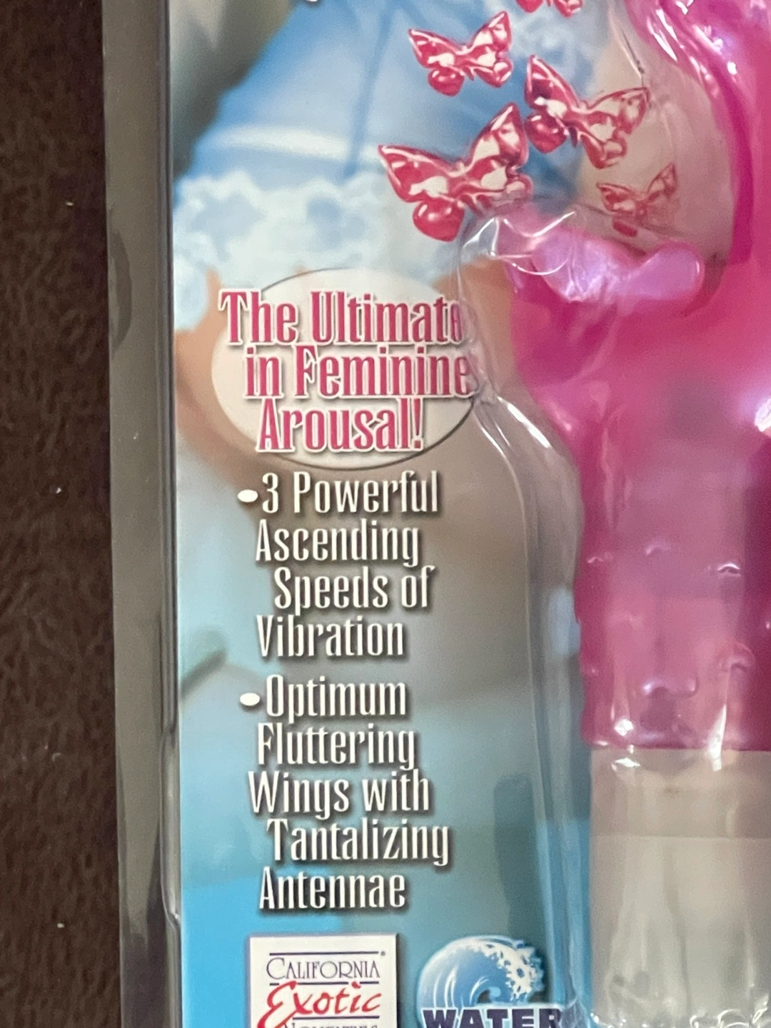 Waterproof, 3-speed vibrator. Sensually designed fluttering butterfly with G-spot arousal. Includes battery.