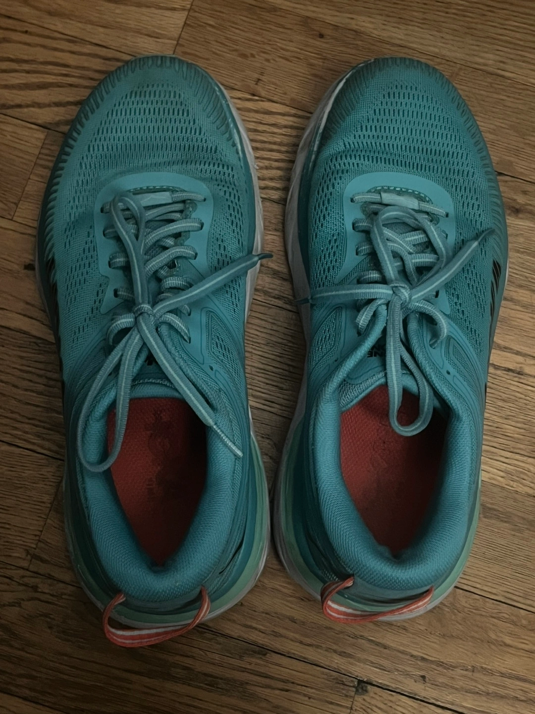 Women's Hoka Bondi 7 running shoes. Aquarelle/ Eggshell Blue color. Size 9 wide. Gently used, some wear. No tears, rips or holes. Please see photos for condition. Pickup Broadway & W 96th Street. Retail $165.00, $50/OBO.