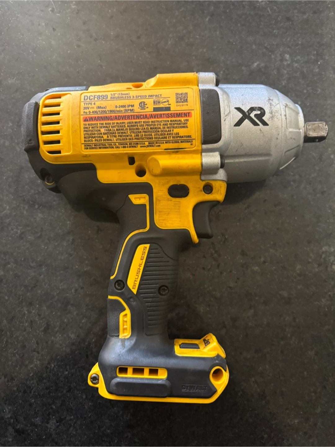 This is a DEWALT 20V MAX XR Brushless 3-Speed Impact Wrench. It's a powerful tool for various fastening tasks. It's sold as the tool only, so you'll need a battery and charger separately. This tool is great for mechanics and DIYers needing a reliable impact wrench!