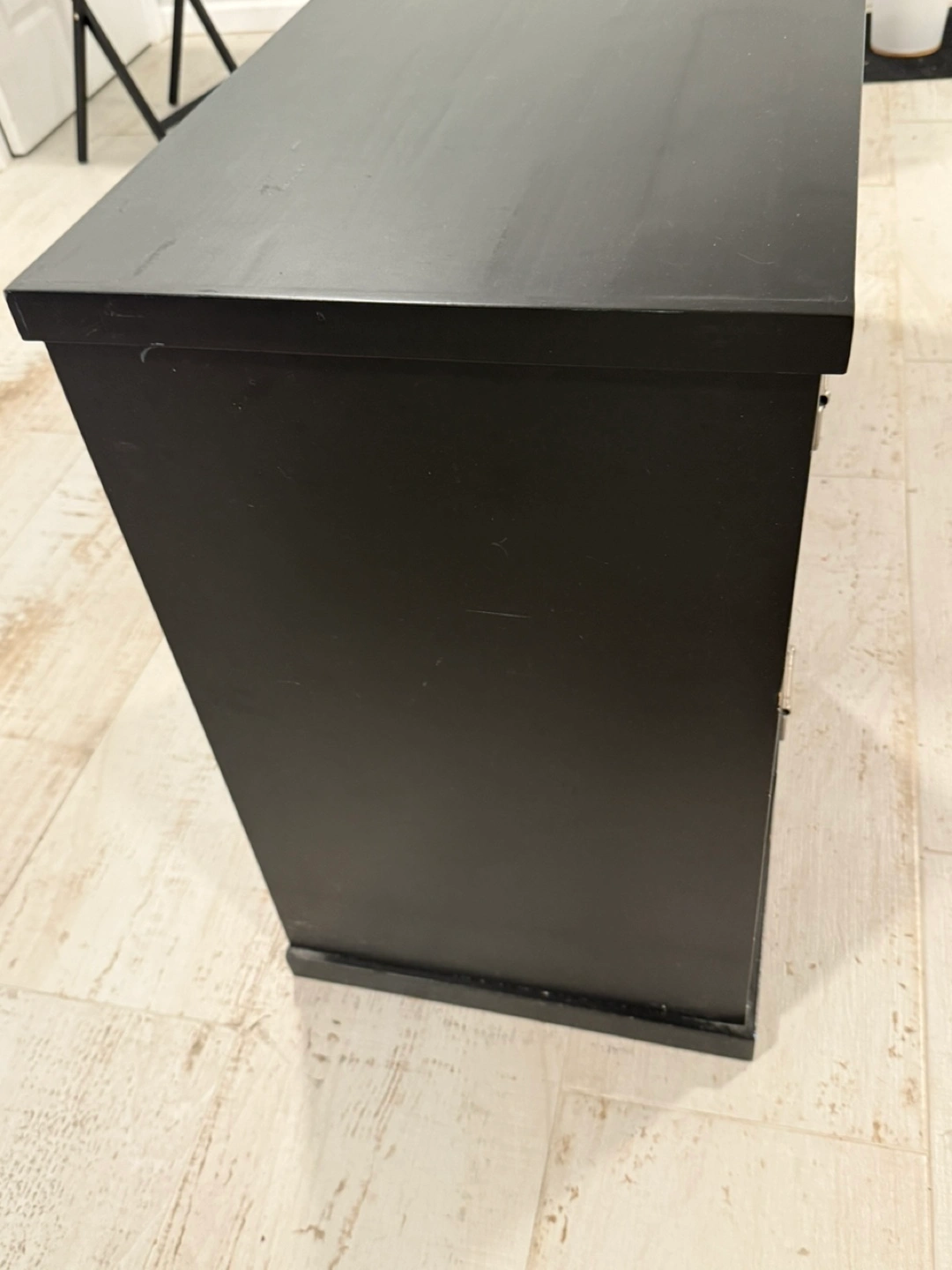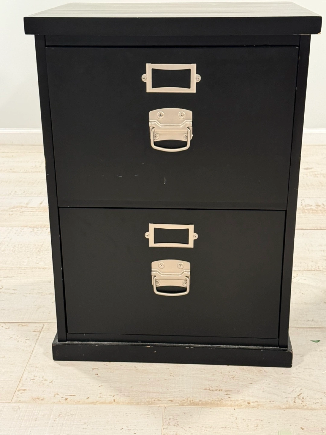 Selling a black two-drawer filing cabinet from Pottery Barn. It's perfect for organizing your documents and keeping your workspace tidy. The cabinet has a classic design with silver-tone handles and label holders. It's sturdy and in good condition, ready to help you stay organized!