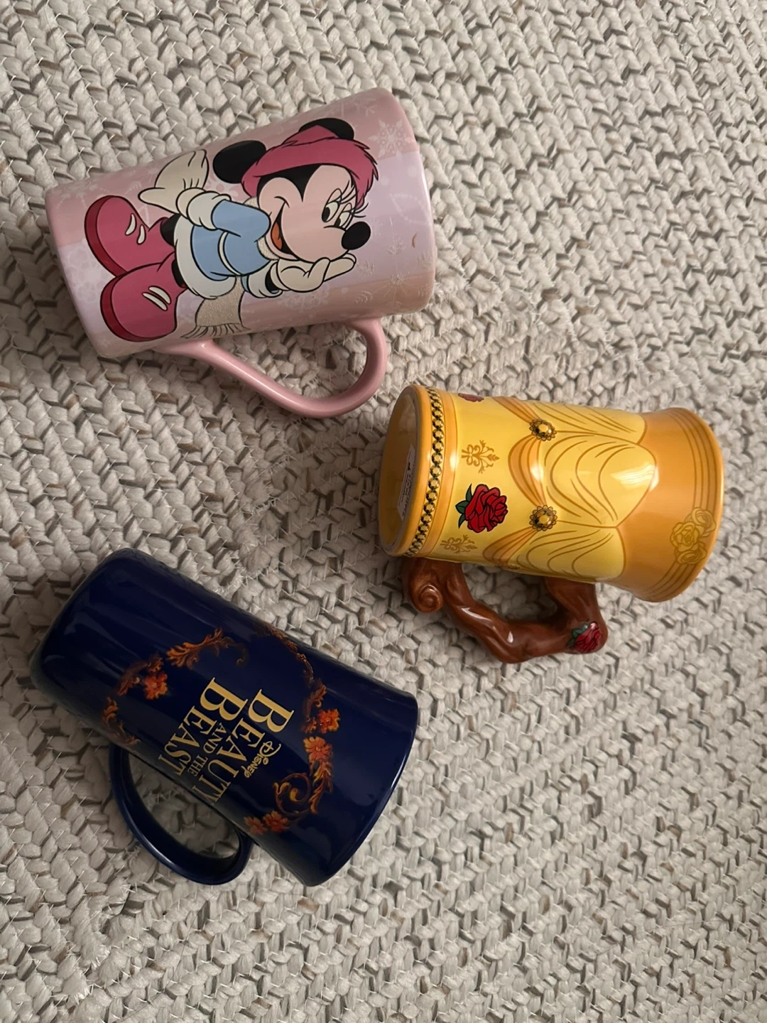 Selling a set of three Disney character mugs! You'll get a Minnie Mouse mug, and two Beauty and the Beast mugs. They are in great condition and ready for a new home