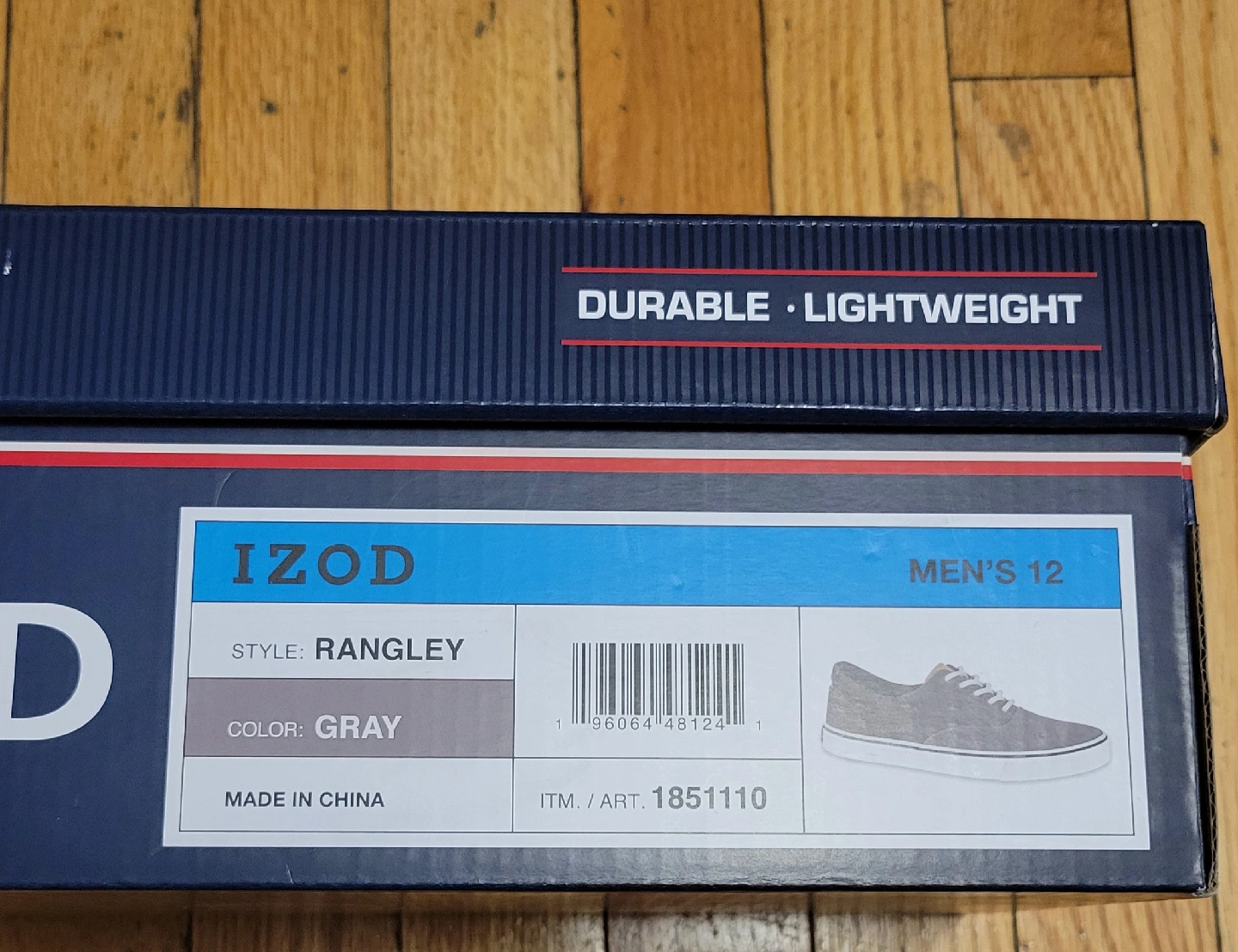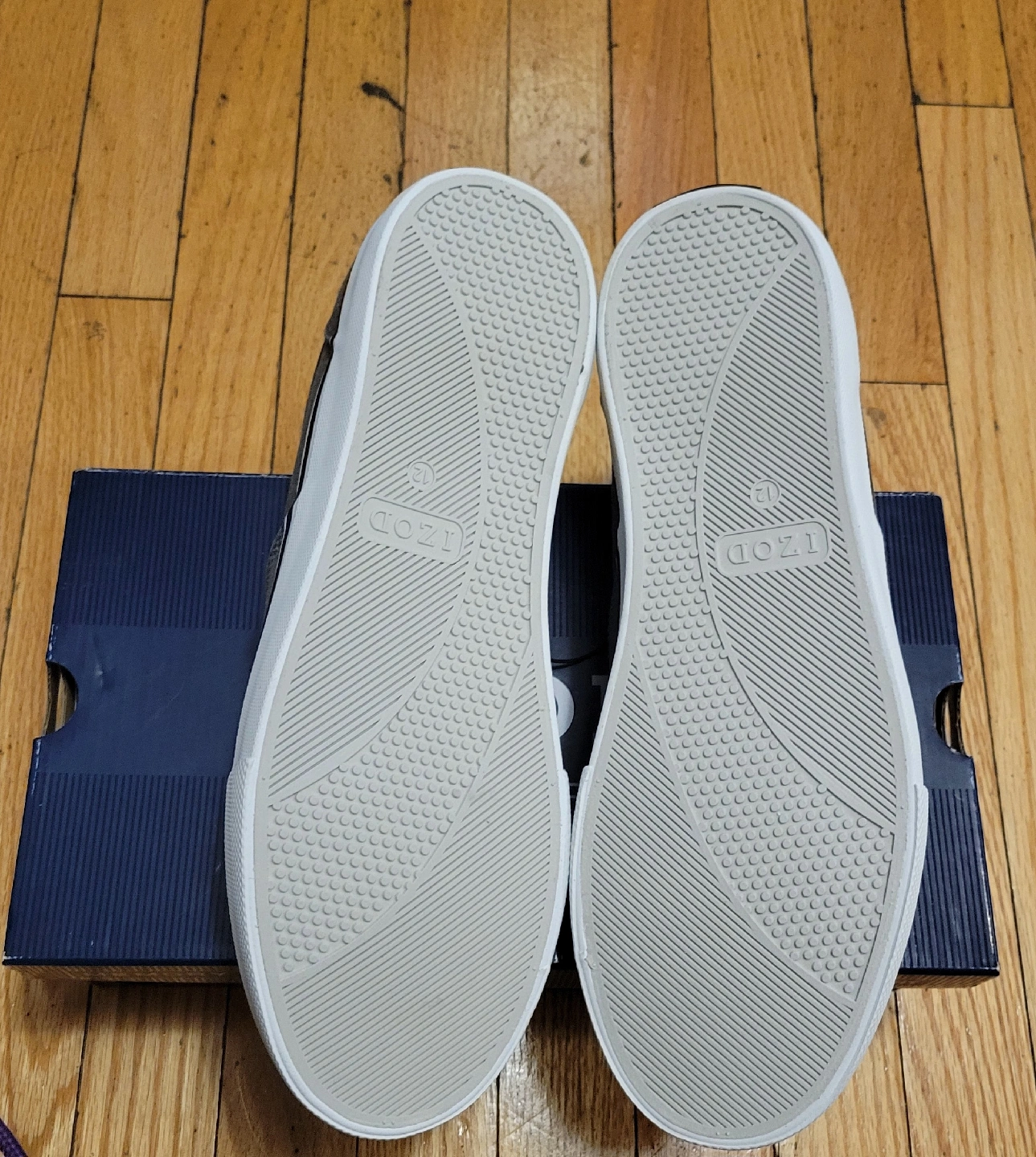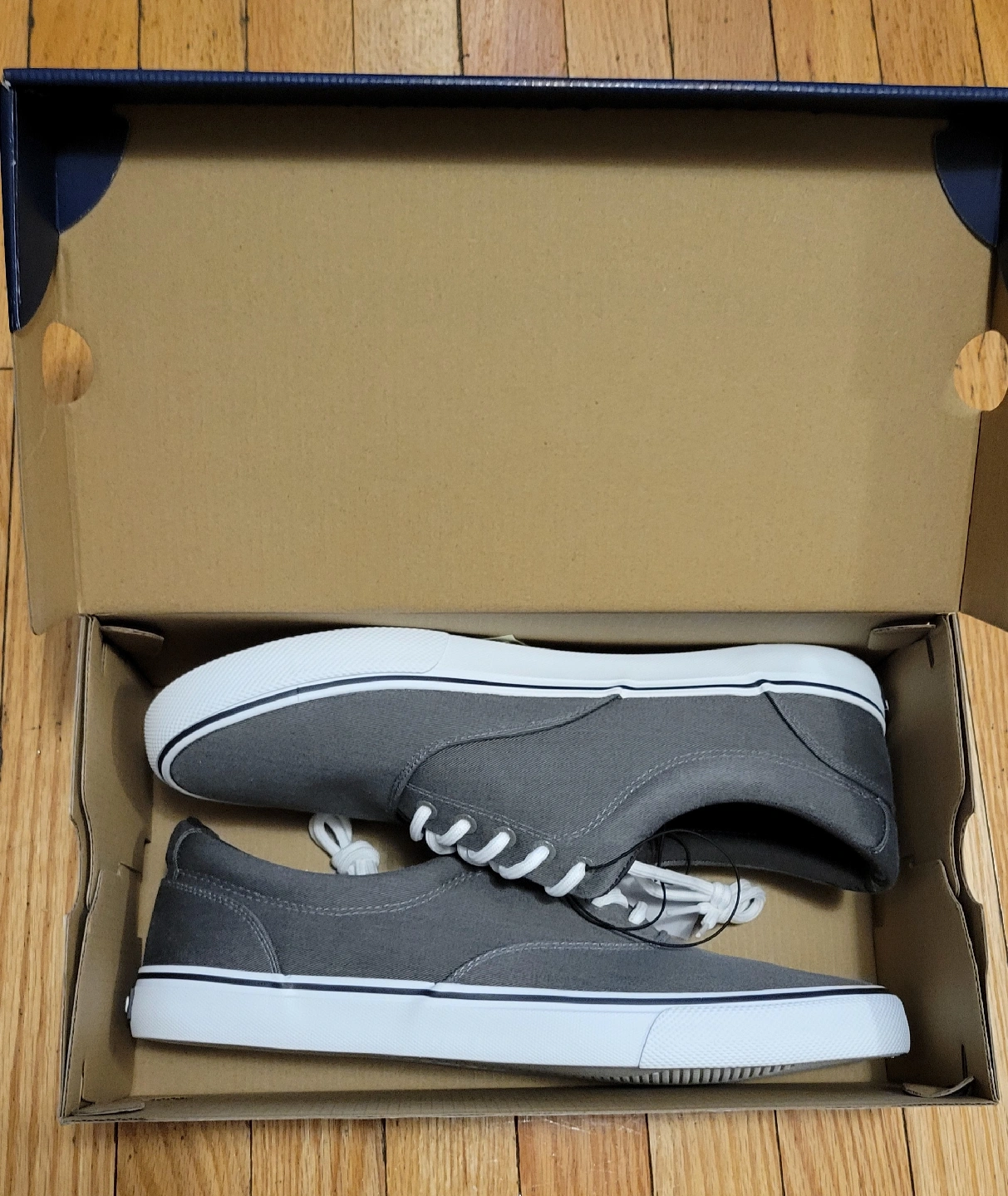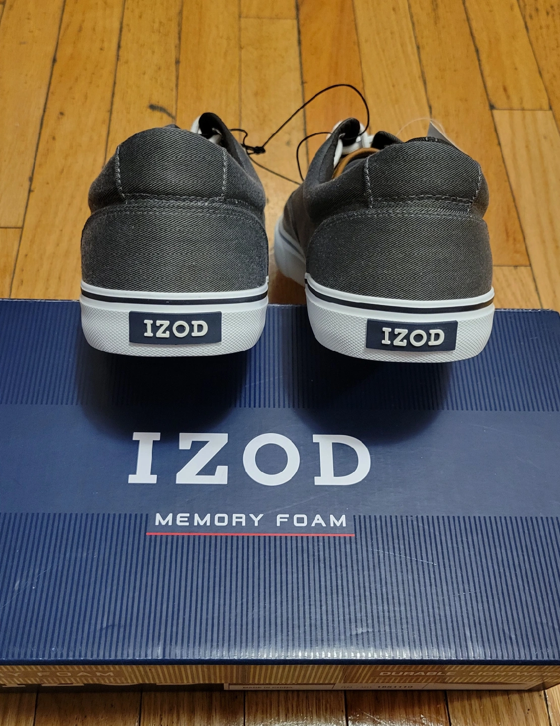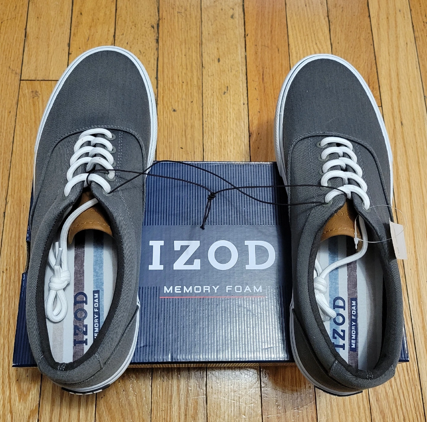 Selling a pair of IZOD Rangley men's sneakers in size 12. These are a stylish gray color and come with the original box. They are durable and lightweight, perfect for everyday wear. The sneakers also feature memory foam for added comfort!
