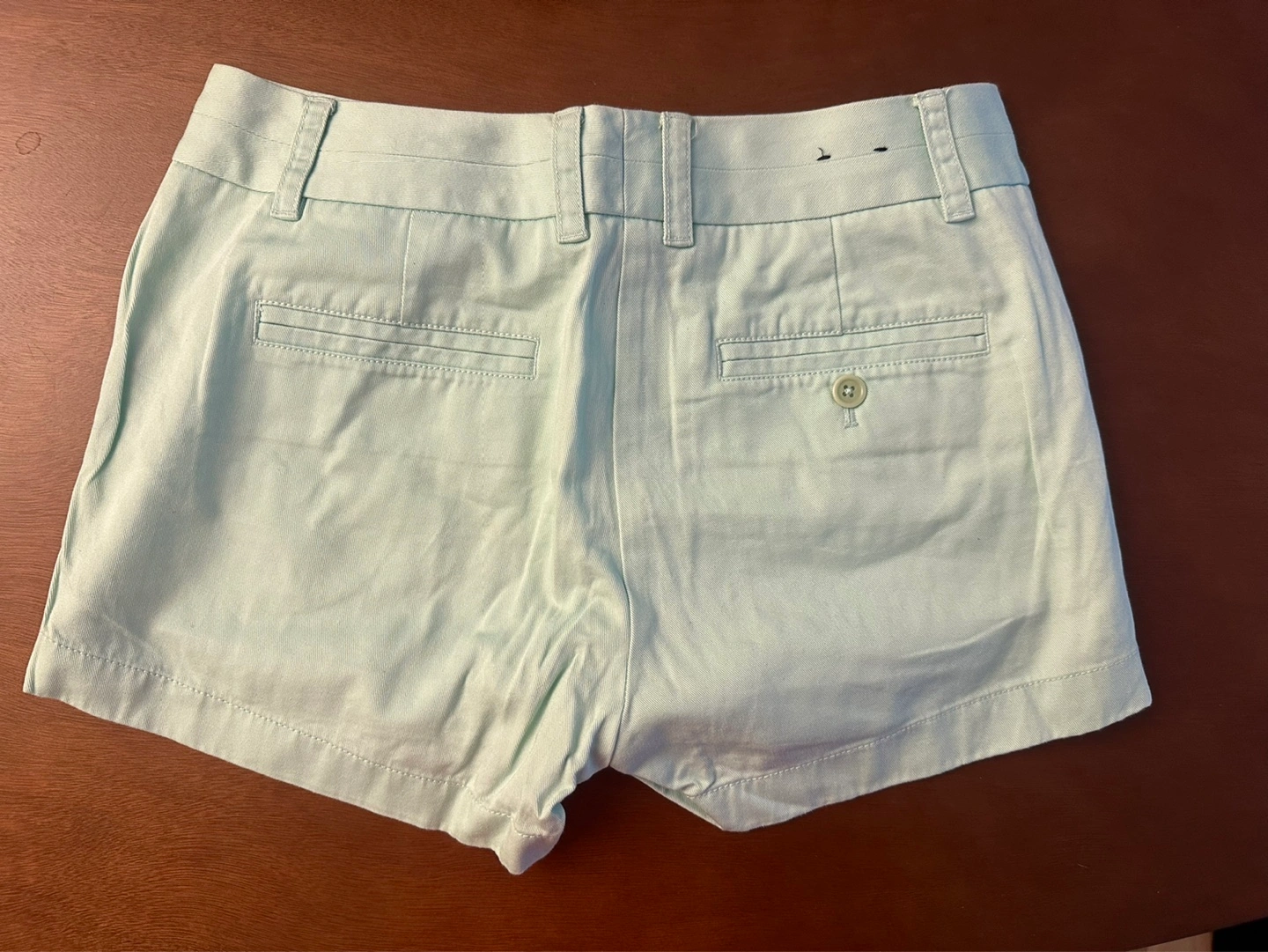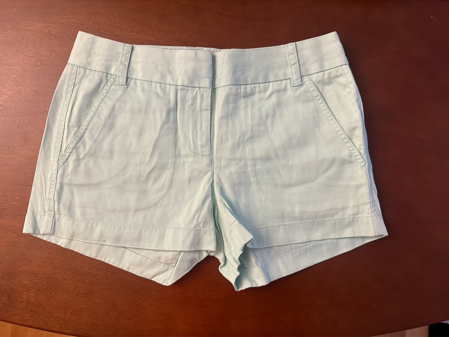 Barely worn! Selling a pair of J.Crew chino shorts in a mint color! They are size 0 and made of 100% cotton. Perfect for a casual, stylish look! 3inch inseam