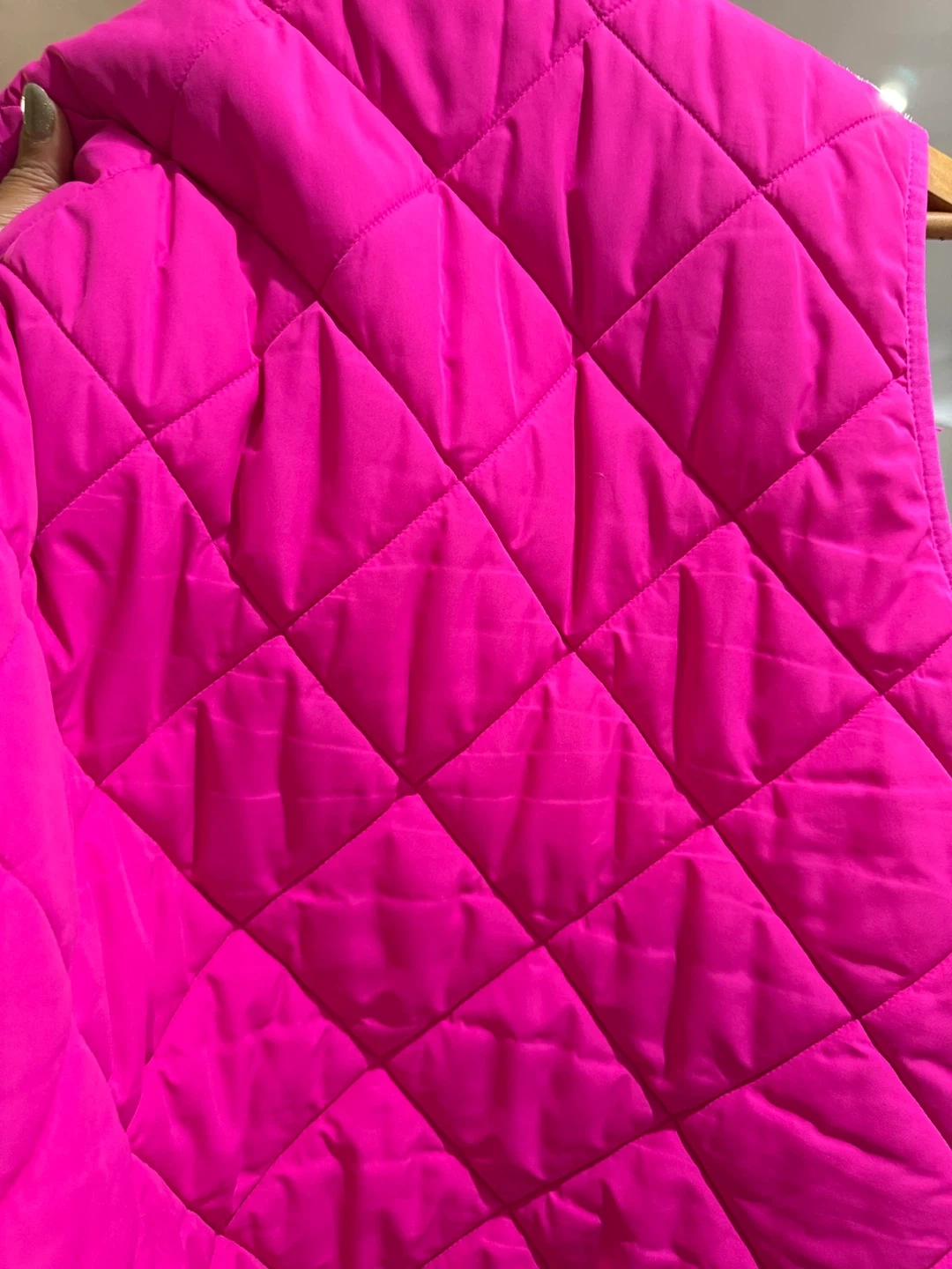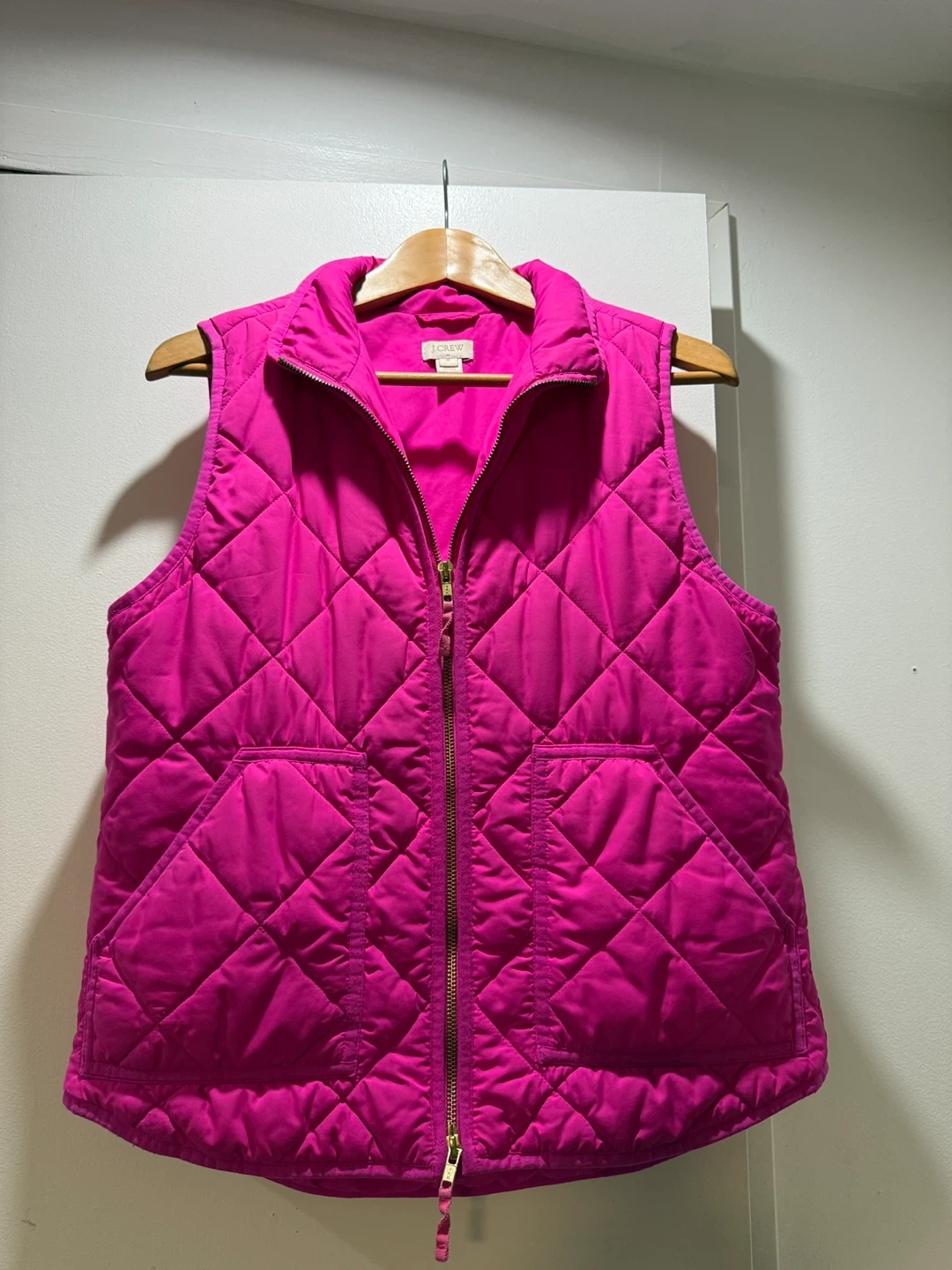 334I'm selling a J.Crew quilted vest in size M. It's a vibrant pink color and in great condition. Perfect for layering!