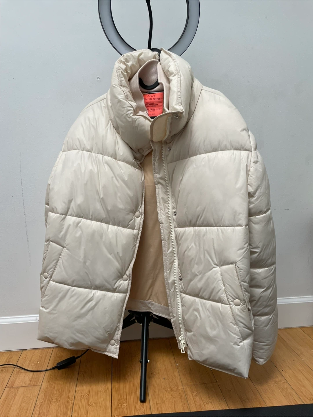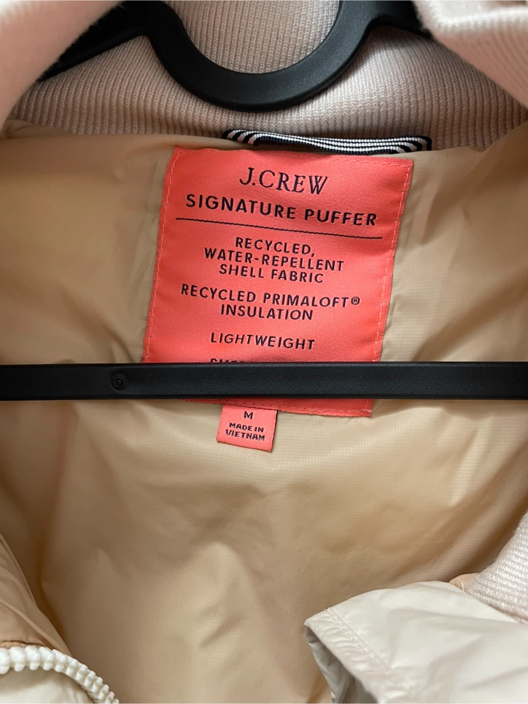 Selling a J.Crew Signature Puffer jacket in size medium! It's made with recycled, water-repellent shell fabric and recycled PrimaLoft insulation. It's also lightweight. Perfect condition