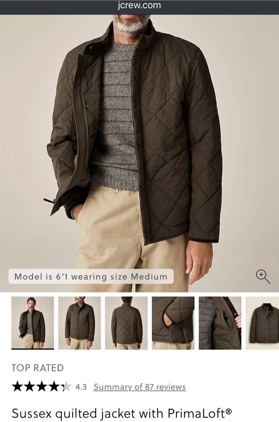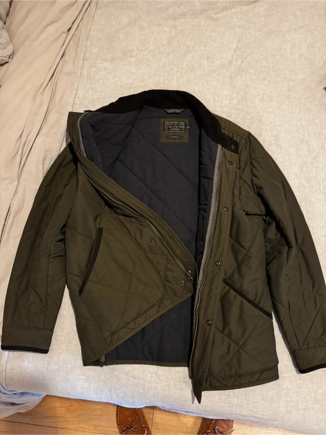 Selling a J.Crew Sussex quilted jacket in olive. It's in great condition and perfect for layering or wearing on its own. The jacket has a stylish quilted design and is made with PrimaLoft® insulation to keep you warm and comfortable. J Cree men’s size small.