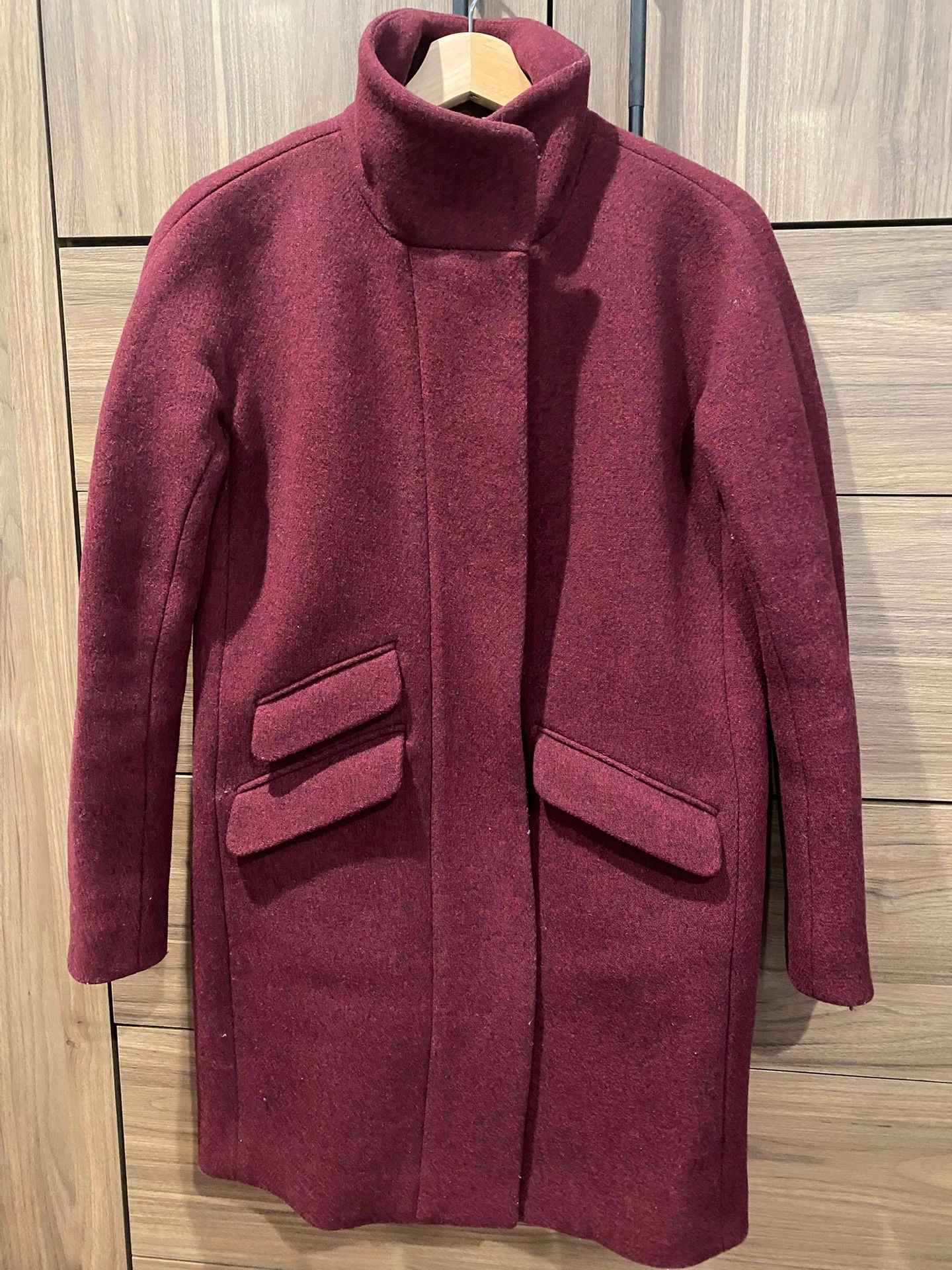 Best selling cocoon coat Standing collar Hidden zipper closure Flap pockets Brand: J.Crew