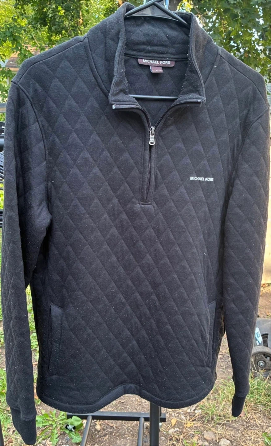 Selling a Michael Kors medium black quilted pullover. It's in good condition and has a stylish quilted design. Perfect for layering or wearing on its own!