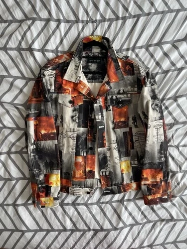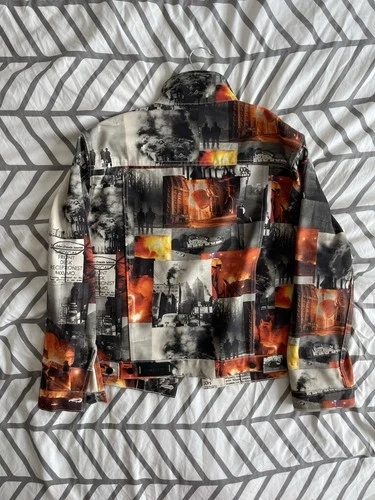 John Geiger All Over Print Denim Jacket Sz M 100% Authentic