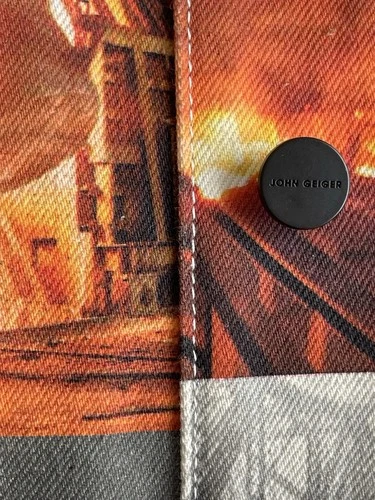 John Geiger All Over Print Denim Jacket Sz M 100% Authentic
