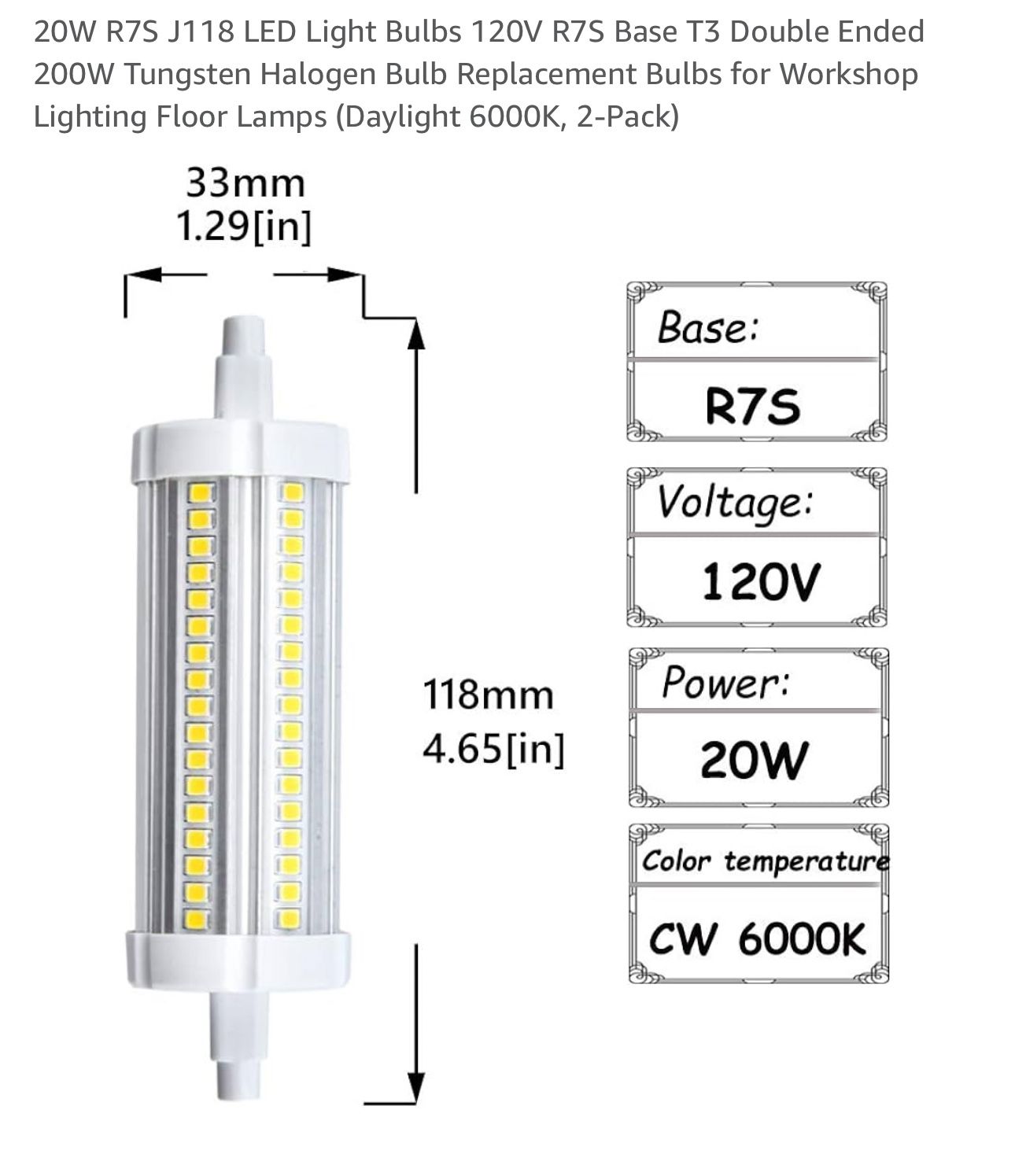 1 / 81 / 8Buy & Sell20W R7S J118 LED Bulbs (8 pk)20W R7S J118 LED Bulbs (8 pk)$608 pieces. Daylight 6000K. Replaces 200W halogen bulbs. Great for workshop lighting or floor lamps.WHERE TO MEETCheck LocationView MapSELLERDouglasMidtown East100 reviews0 chats·0 favorites·2 viewsSEND CHAT TO SELLERHi Douglas! I’m interested in your listing.Hi Douglas! I’m interested in your listing.Get the Karrot app to chatSign In to chat