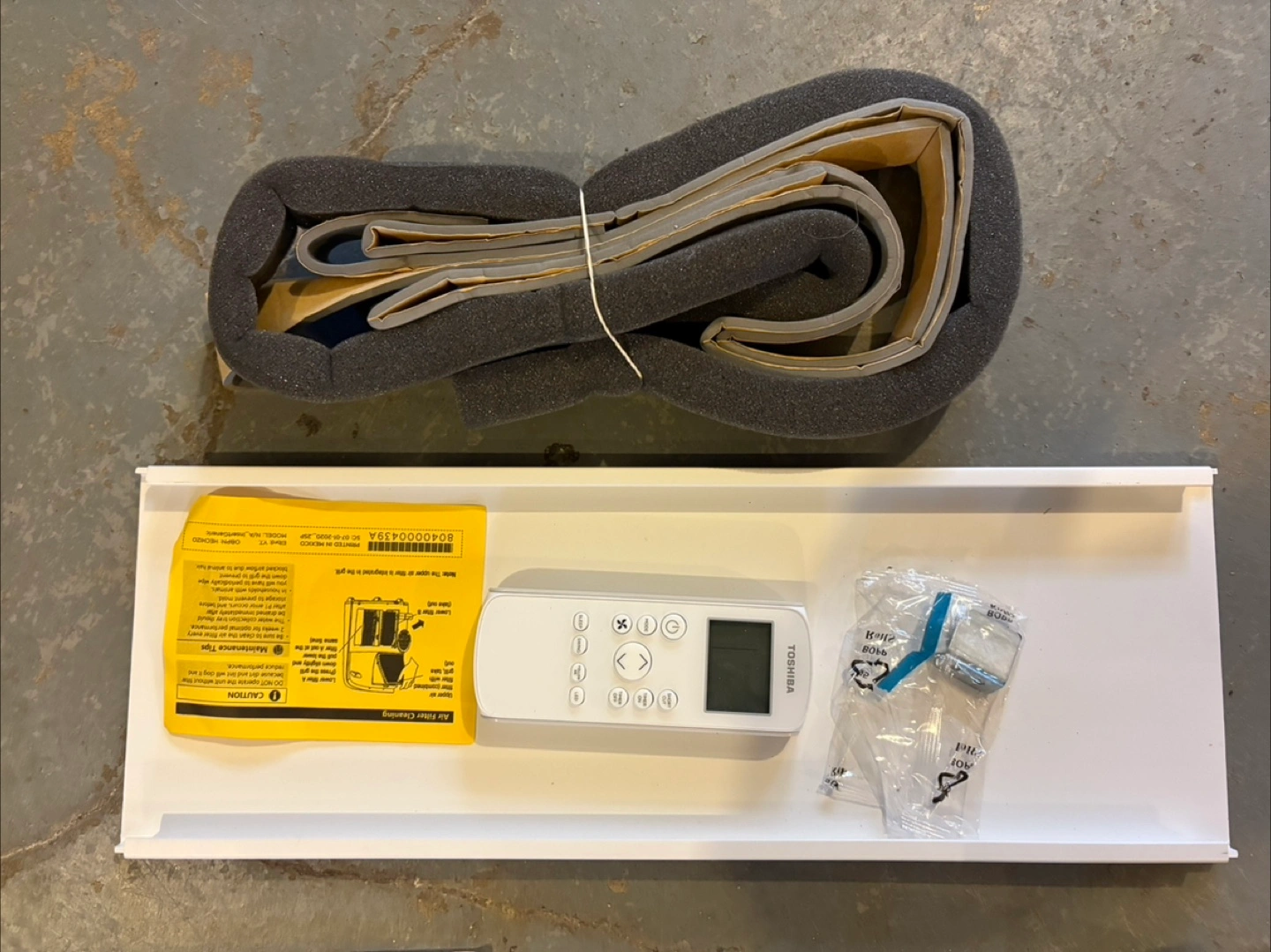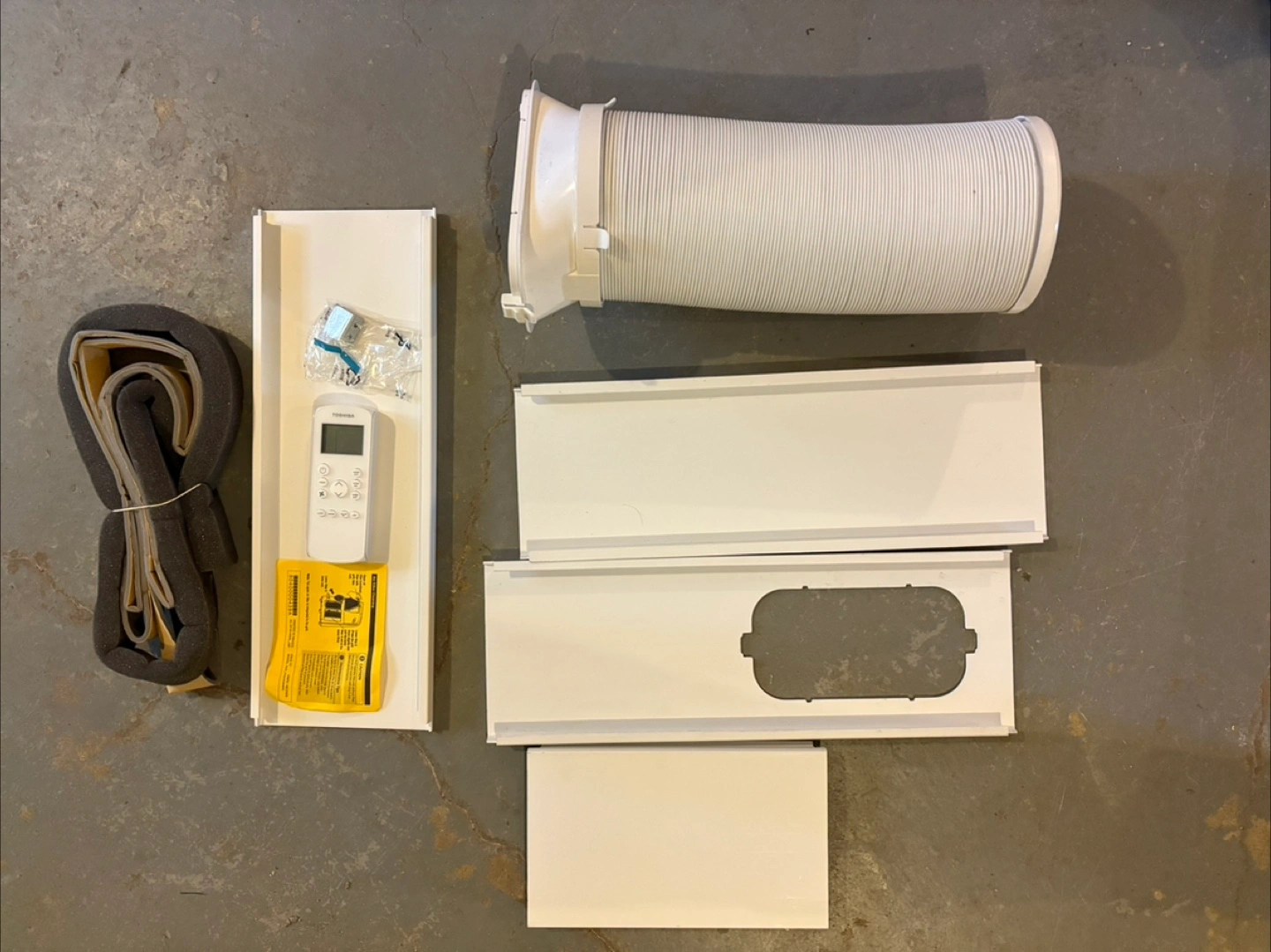 Selling a Toshiba portable air conditioner. It comes with all the necessary components, including the remote control and window installation kit. It's in good condition and ready to keep you cool!