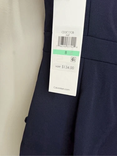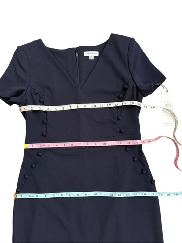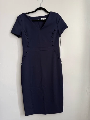 Calvin Klein Scuba navy crepe button detail sheath dress size 8