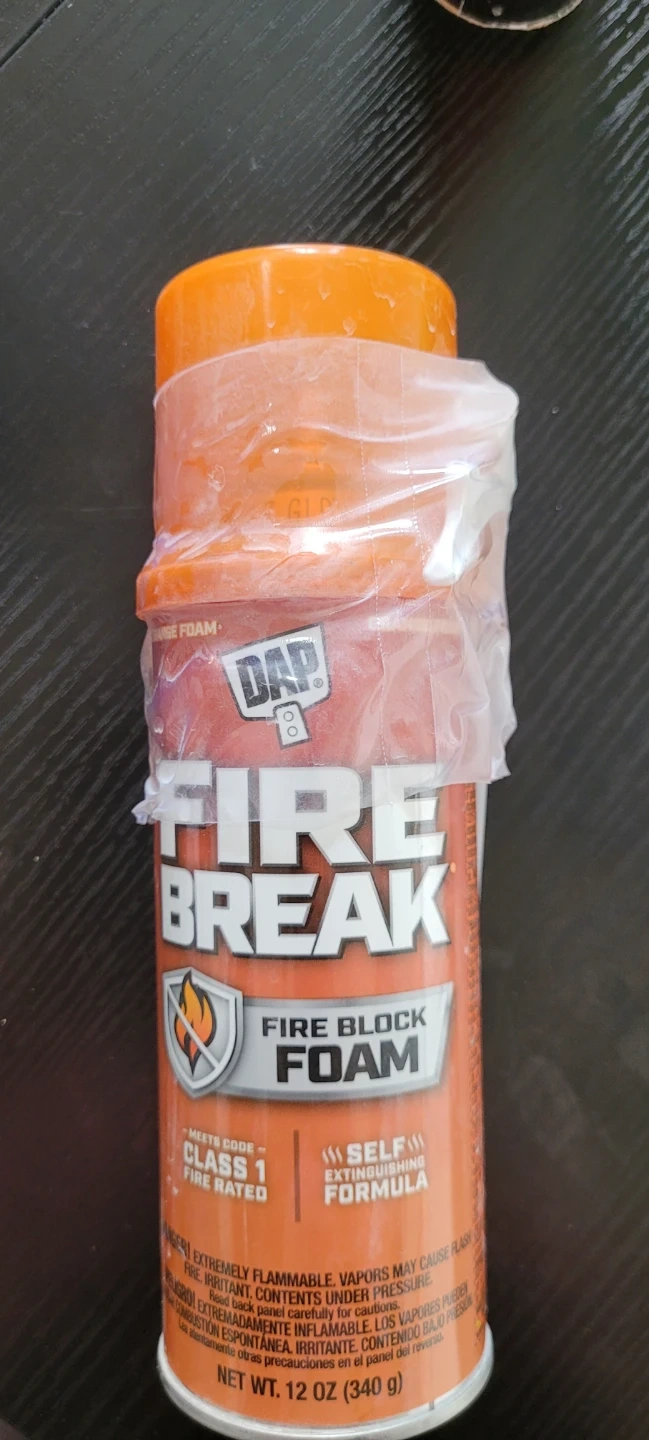 This is a can of DAP Fire Break Fire Block Foam. It's a Class 1 fire-rated product with a self-extinguishing formula. Net Wt. 12 oz (340 g).