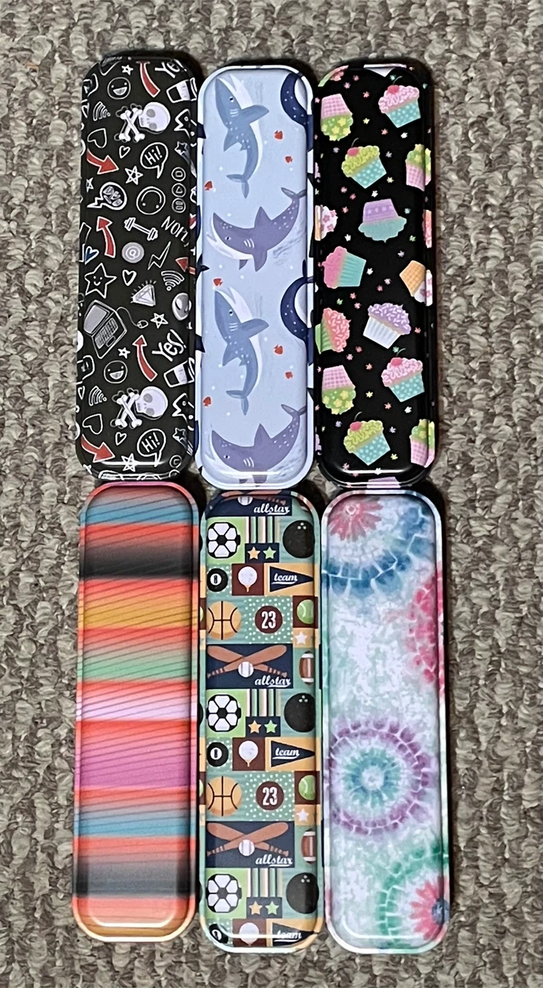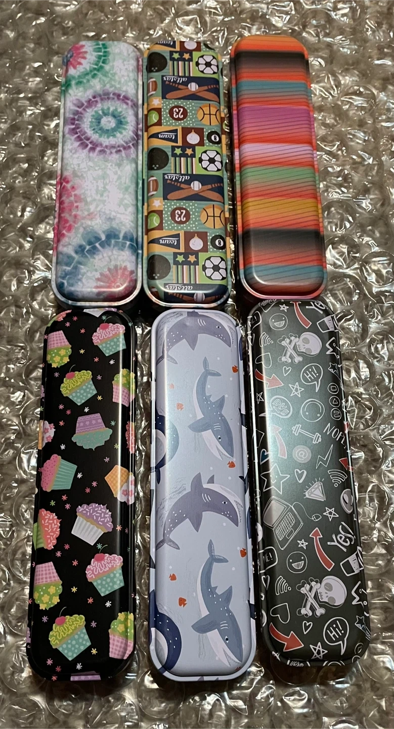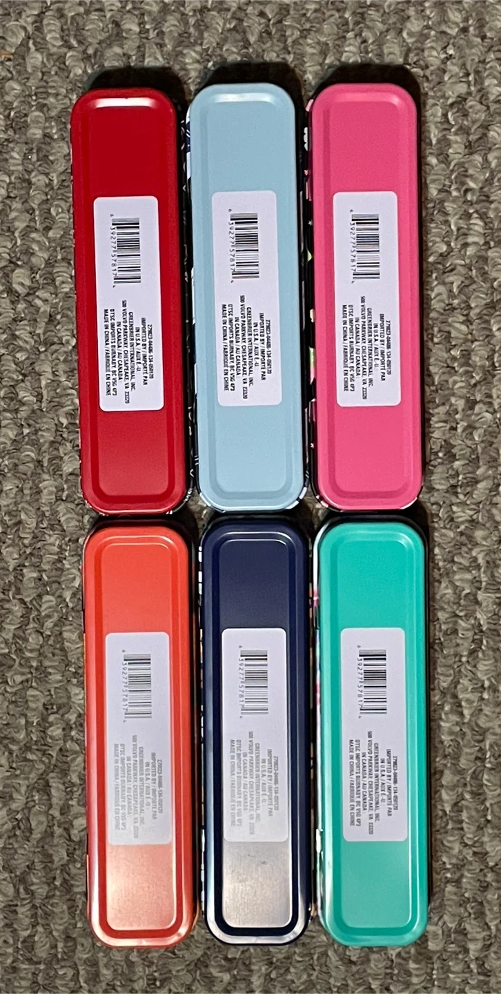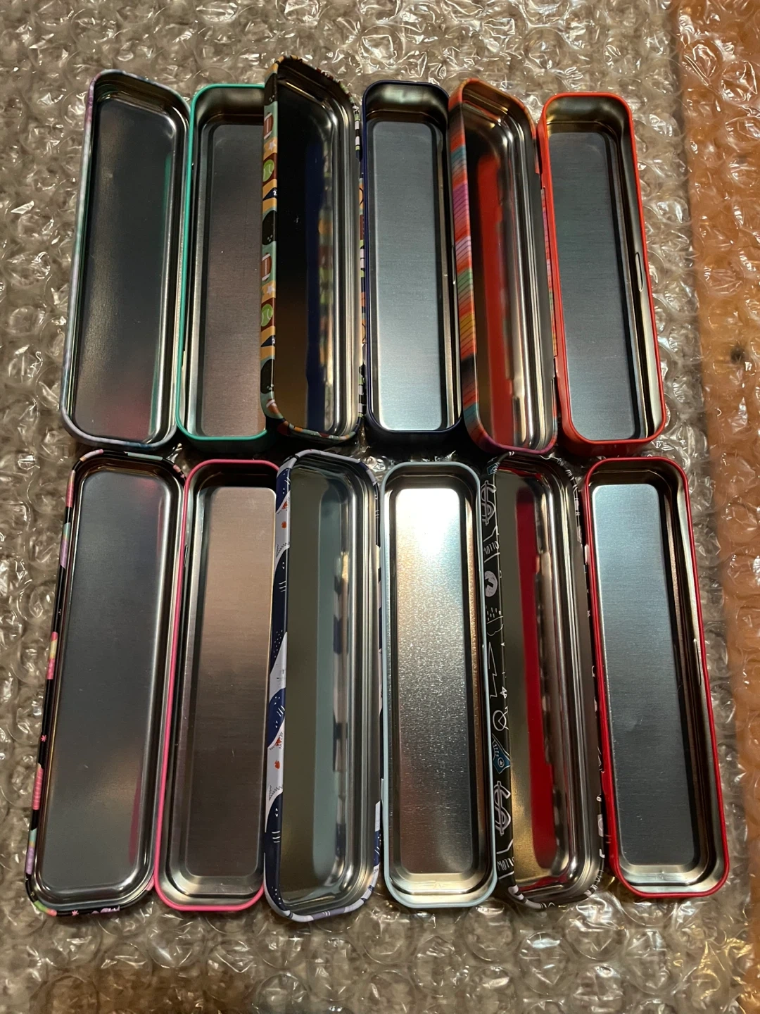 Small tin storage containers. They can be used to store pencils, small make up brushes, crayons, paper clips etc…
