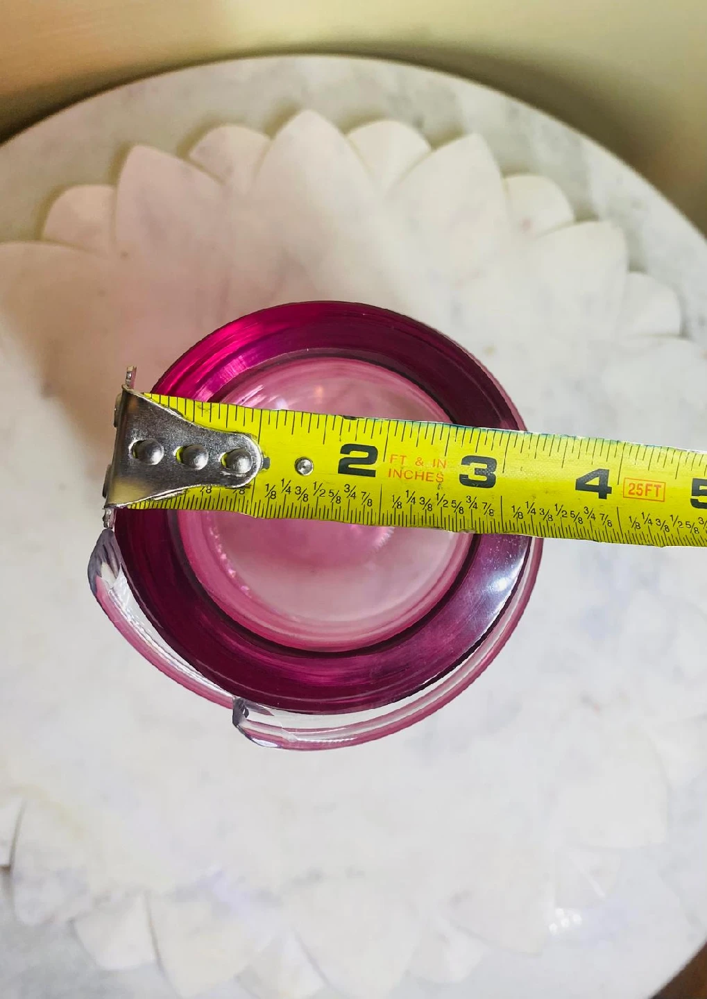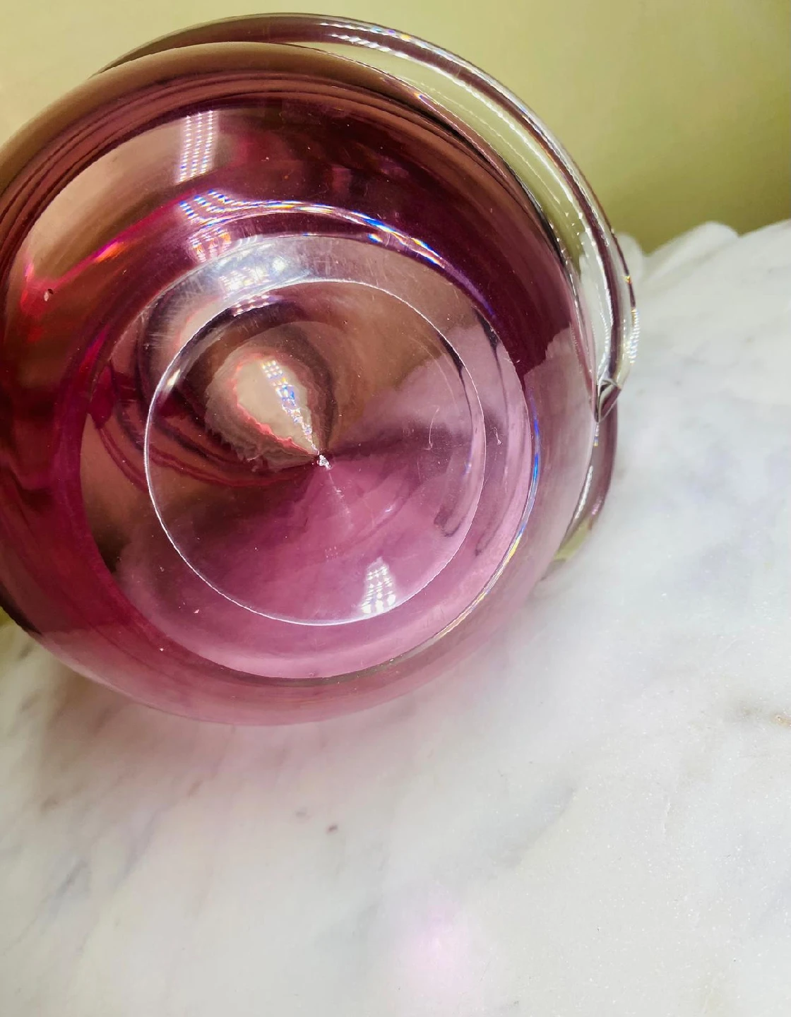 Pink Glass Vase with Clear Swirl Design