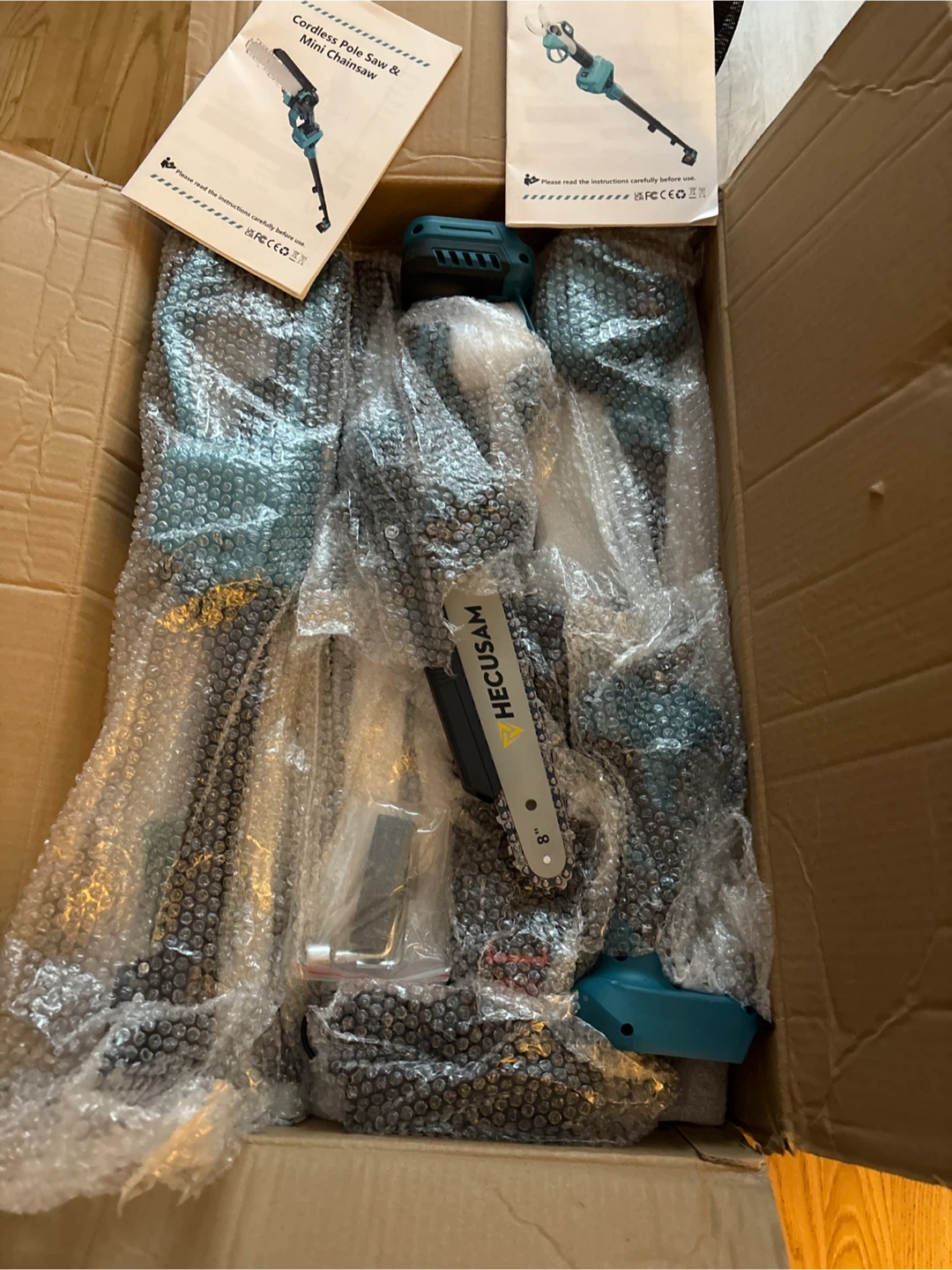I'm selling New never used HECUSAM Cordless Pole Saw & Mini Chainsaw with an included Brushless Pole Pruning Shear. The chainsaw has an 8" blade and comes with the original box and instructions