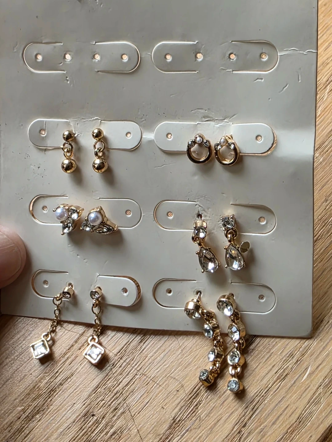 Set of 6 Pairs of Gold Rhinestone Earrings
