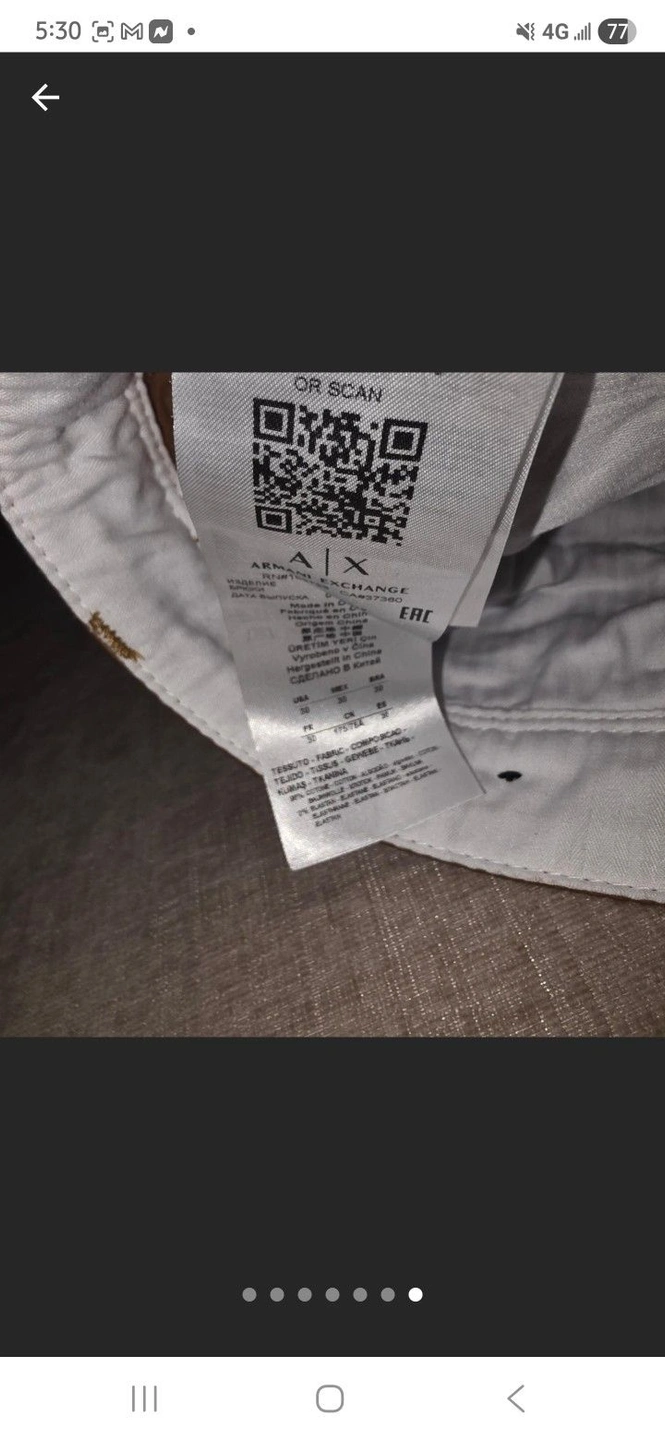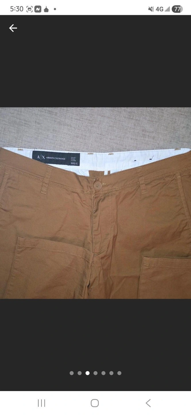 These ARMANI EXCHANGE tailored trousers are crafted from a woven, stretchy fabric. Featuring a solid color, brand logo, mid rise, belt loops, tapered leg, slim fit, zipper and button fastening, slit pockets, and welt pockets, these trousers are designed for both style and comfort. These trousers should be machine washed, do not bleach, do not tumble dry. Size: 30. Brand: Armani exchange.