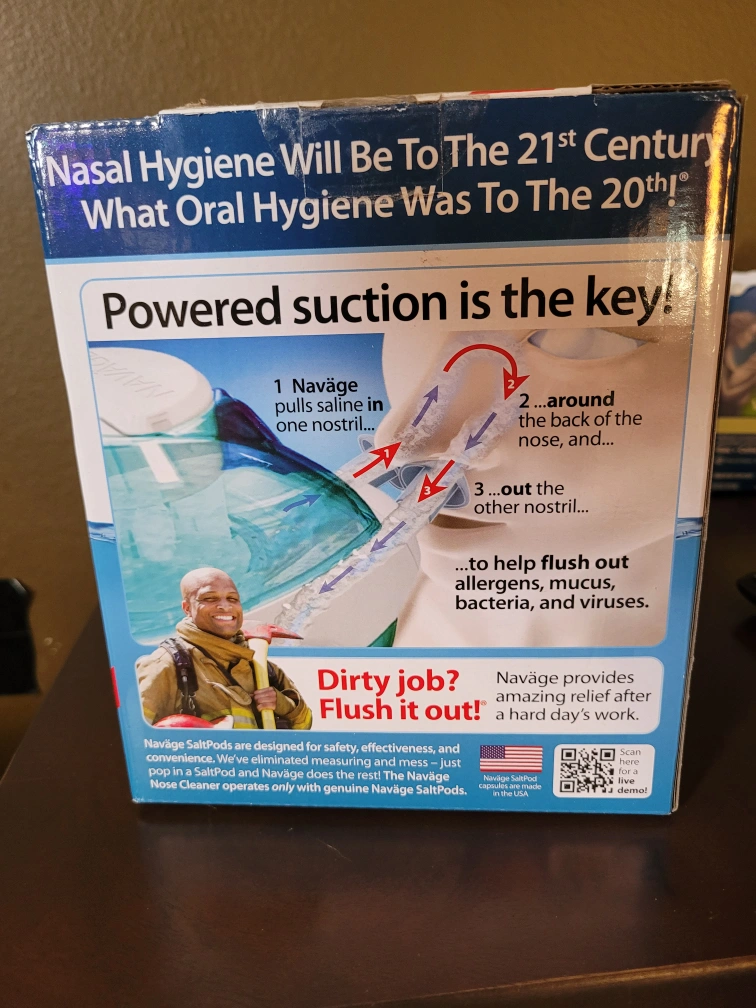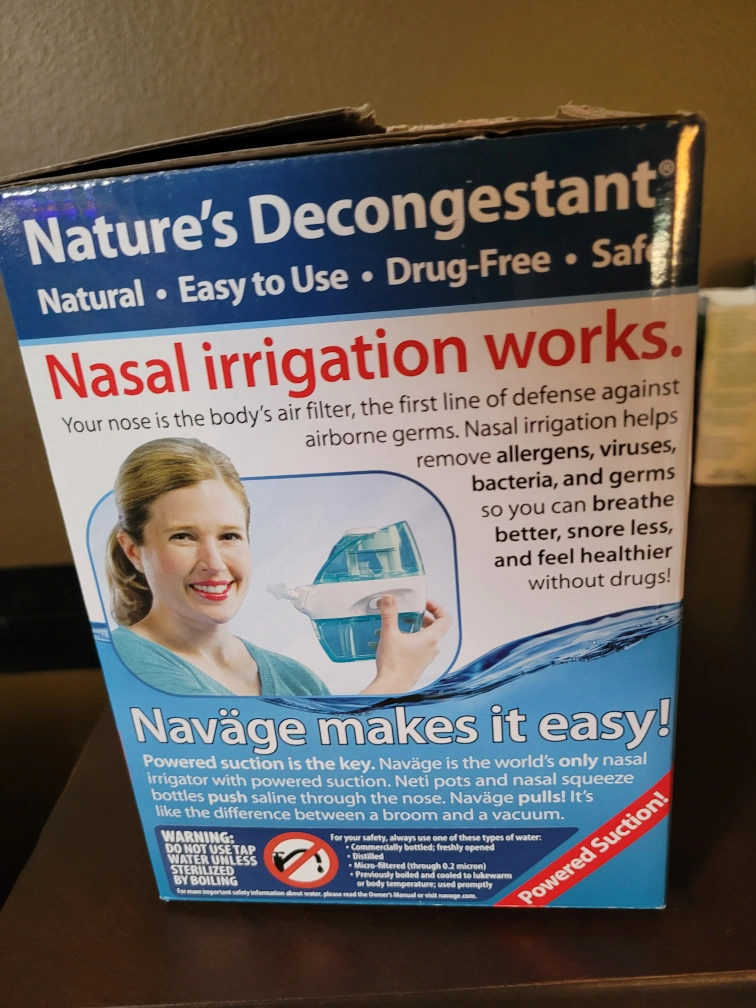 I'm selling a Naväge Nasal Care system. It's a saline nasal irrigation system designed to help relieve sinus congestion and allergies. It is easy to use and drug-free! Naväge provides amazing relief after a hard day's work!
