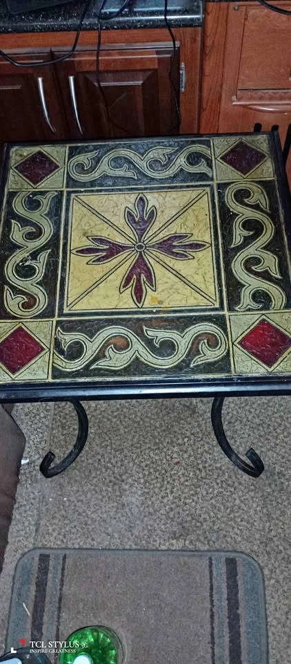 Set of two decorative accent tables, both in great condition. Each table has an ornate patterned top and sturdy black metal legs. Perfect for living rooms, entryways, plant stands, or matching décor setups. Both tables together: $30 (best deal). Small table alone: $25. Large table alone: $35. No wobble. Clean and well-kept. Smoke-free home. Can be used together or separately. Decorative tops with detailed designs.