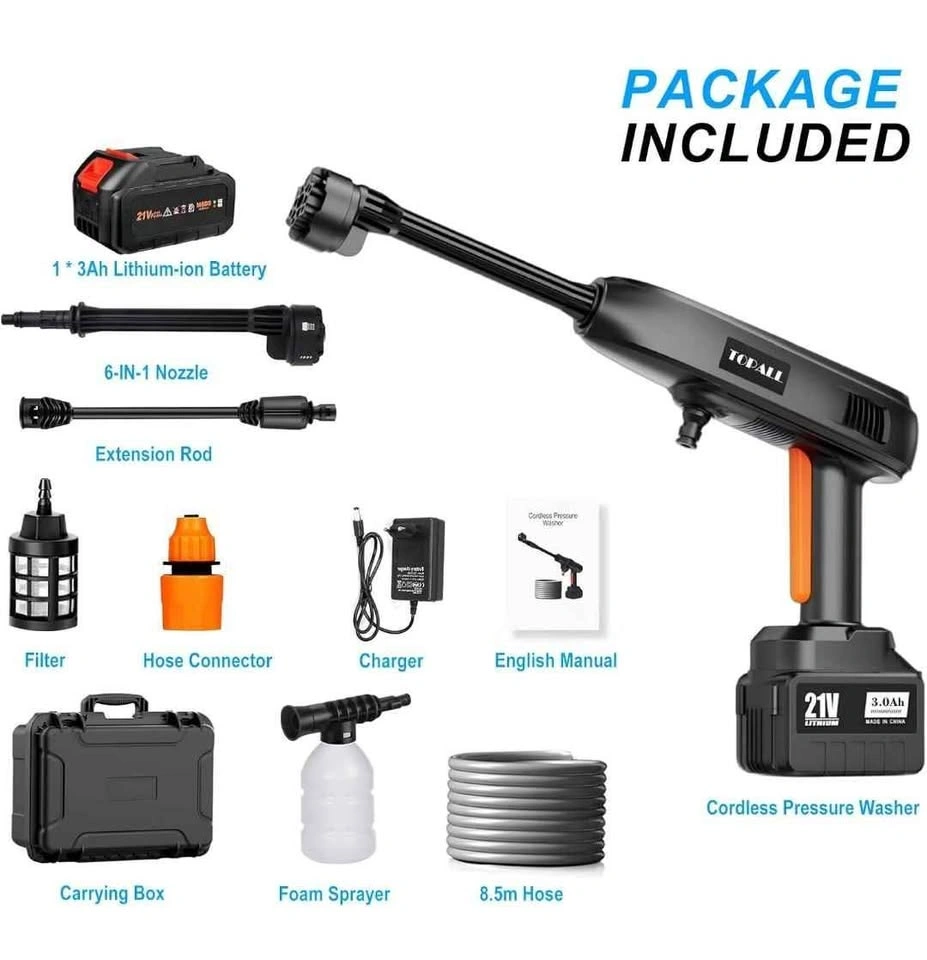 cordless pressure washer, battery powered pressure washer, portable power washer, 3.0Ah battery washer, 6-in-1 nozzle pressure washer, car wash pressure washer, yard cleaning washer, home power washer, lightweight cordless washer, outdoor cleaning tool, rechargeable pressure washer, mobile pressure washer, garden pressure washer, compact power washer, driveway cleaning washer, patio cleaner, cordless car washer, versatile pressure washer, portable battery washer, electric pressure washer
